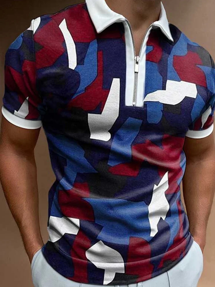 Мужская рубашка-поло на молнии, с коротким рукавом и отложным воротником