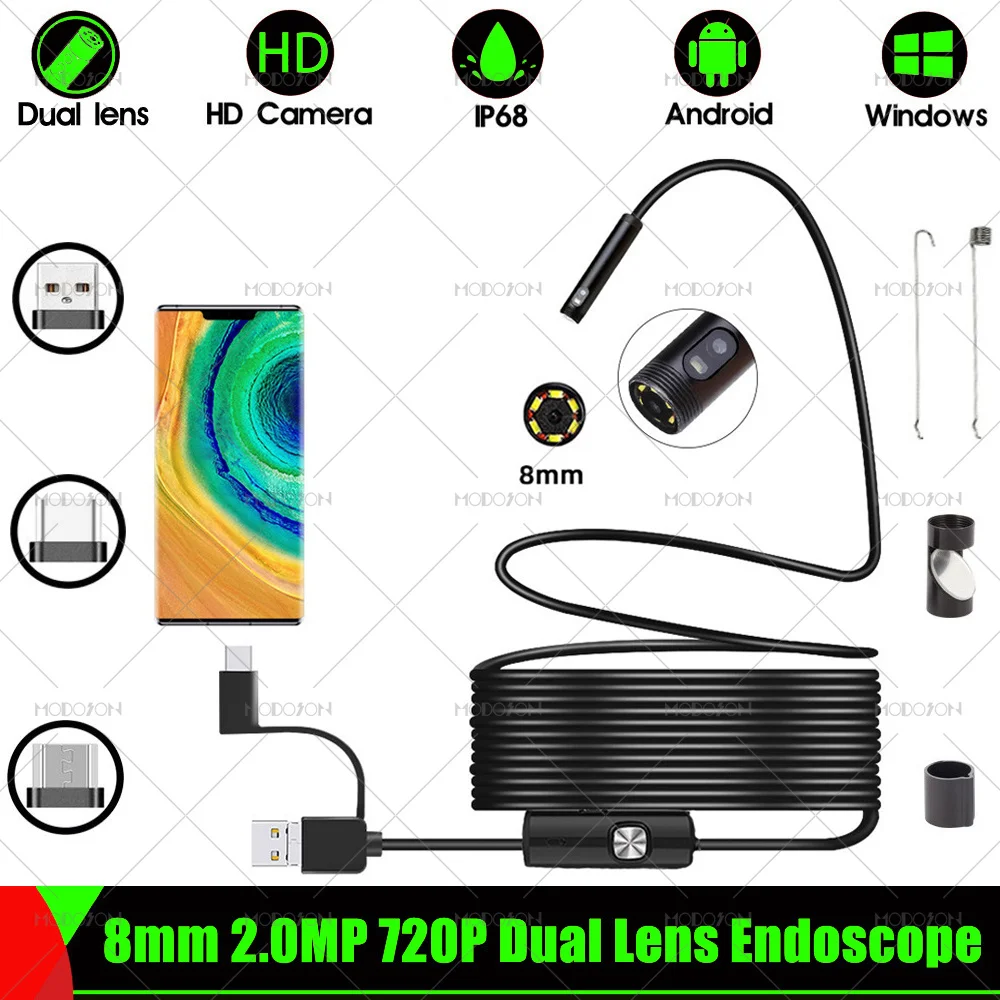 8 мм 2.0MP 720P двойной объектив HD эндоскоп камера Mirco USB Type-C эндоскопия осмотр бороскоп автомобильный Видеоскоп для телефона Android