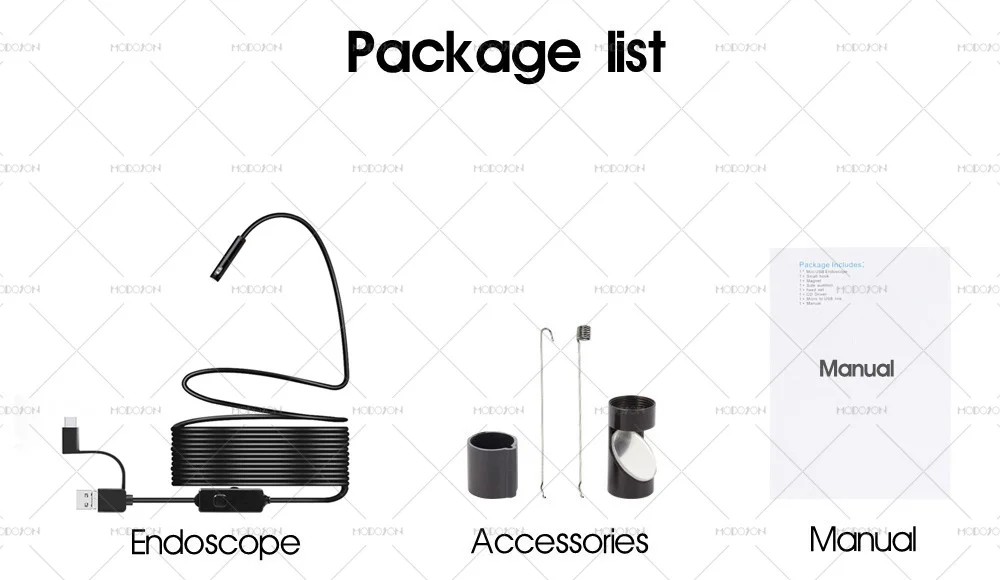 1 * эндоскоп1 * зеркало1 * маленький крючок1 * магнит1 * Руководство пользователя