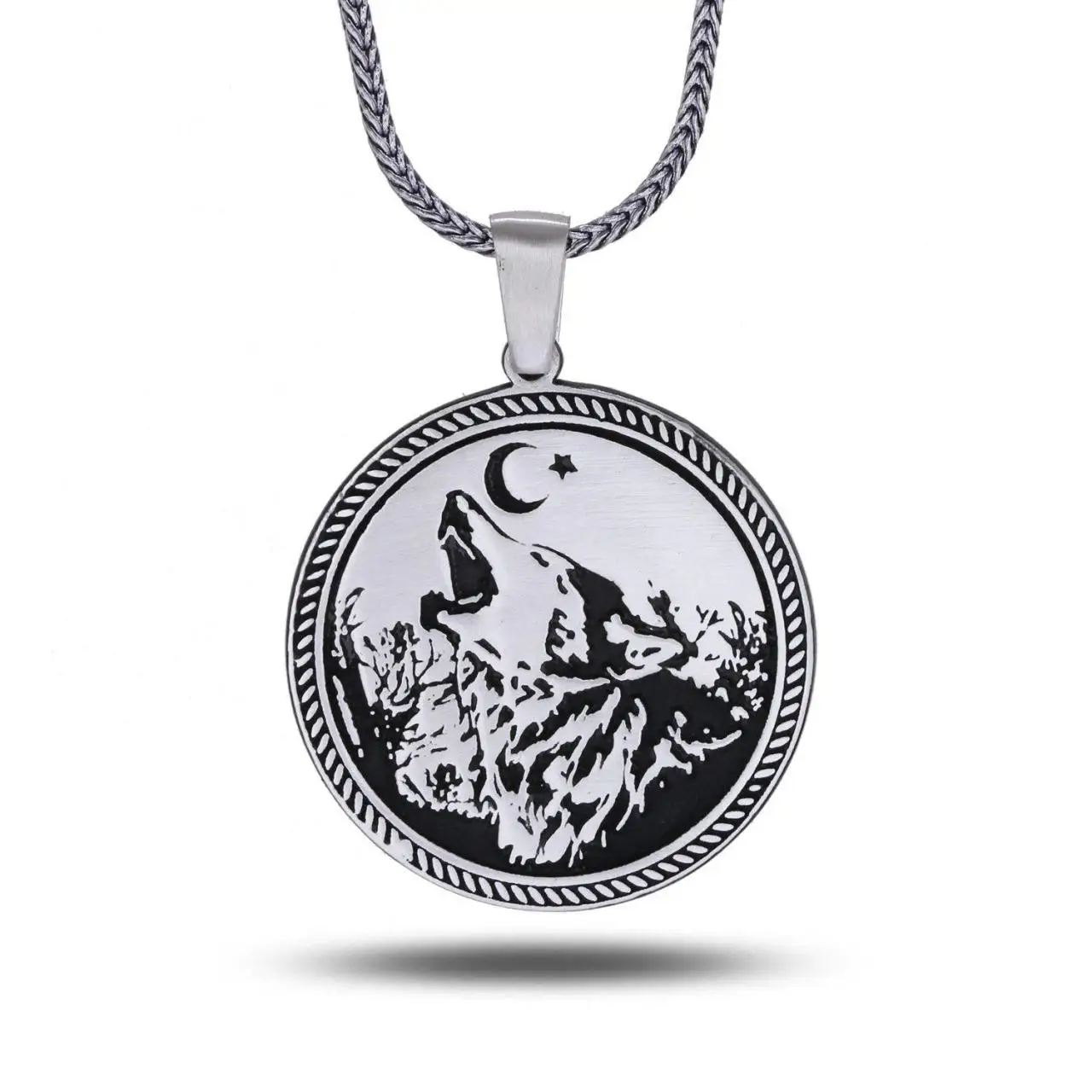 Серый Волк, Locket 60 см, ожерелье из серебра 925 пробы
