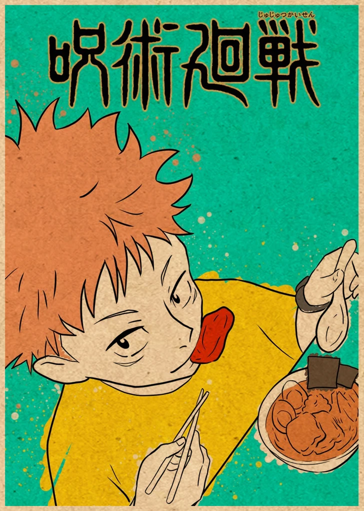Японский классический постер с изображением крови из мультфильма юзютсу кайсена, расписанный вручную, семейное украшение, ретро постер из крафт-бумаги