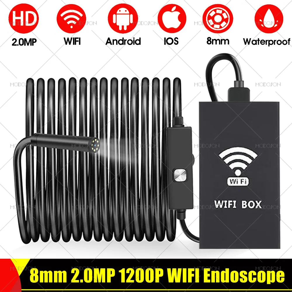 8 мм 2.0MP 1200P WIFI HD эндоскоп камера Змеиный кабель видео Автомобильный трубопровод промышленный осмотр бороскоп для iphone Android