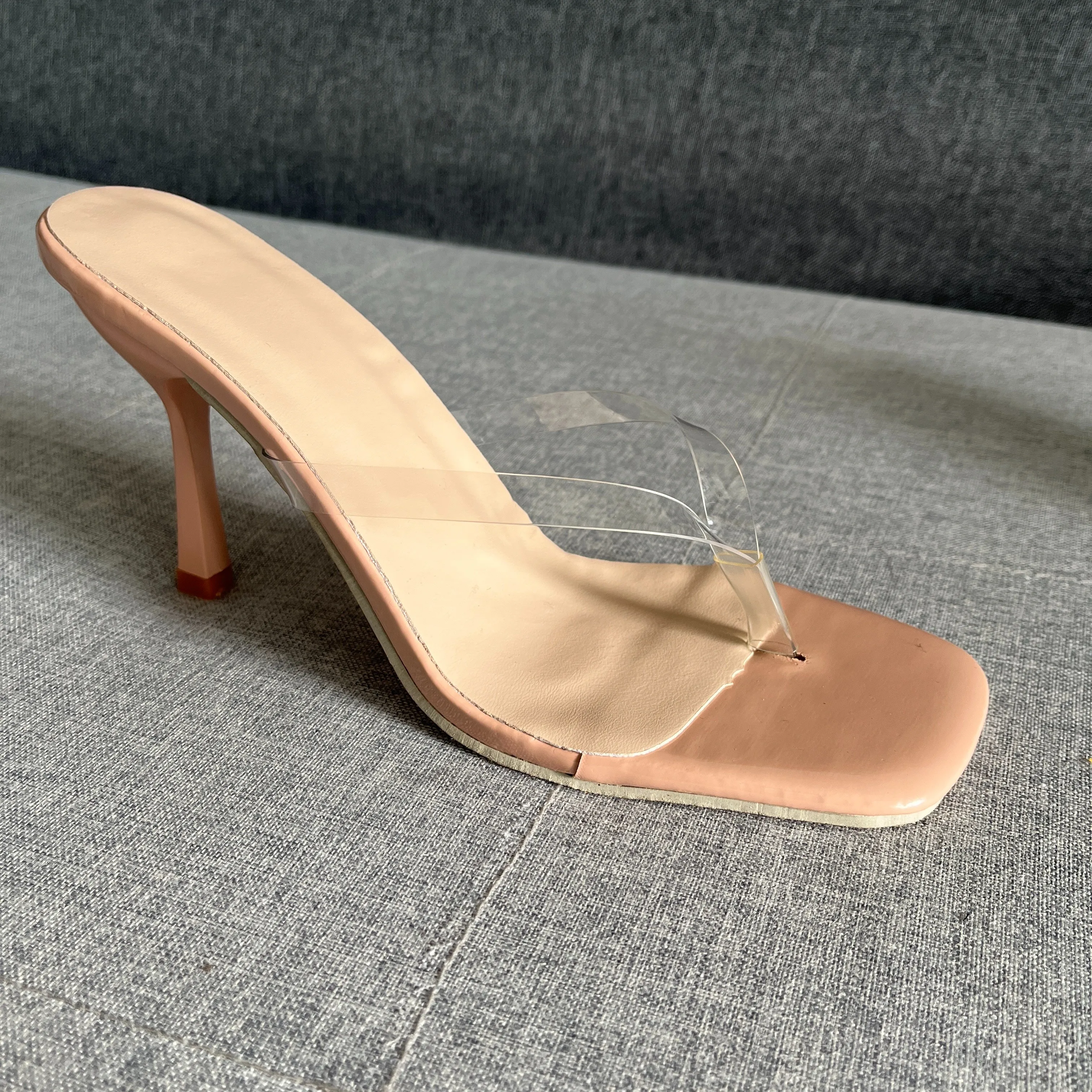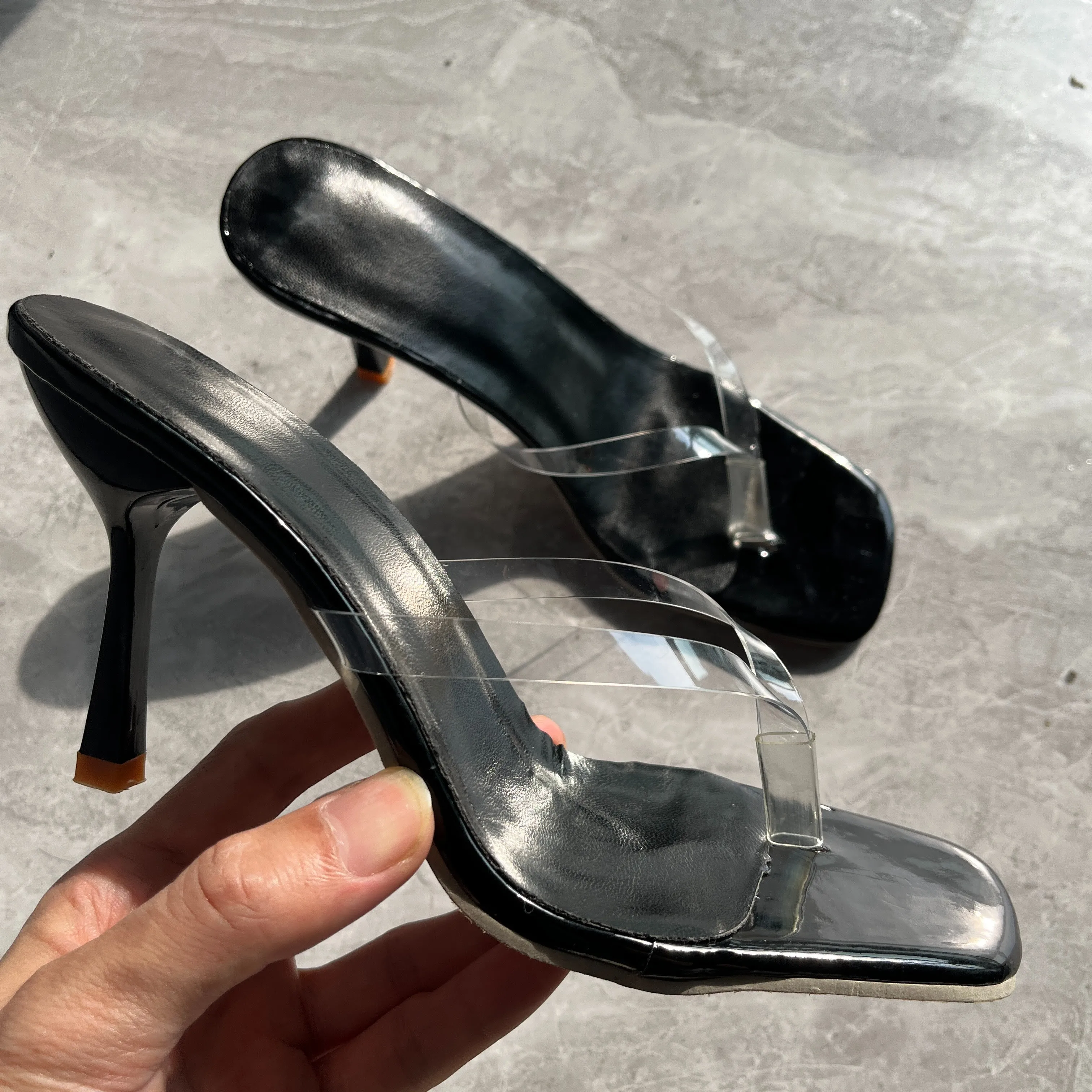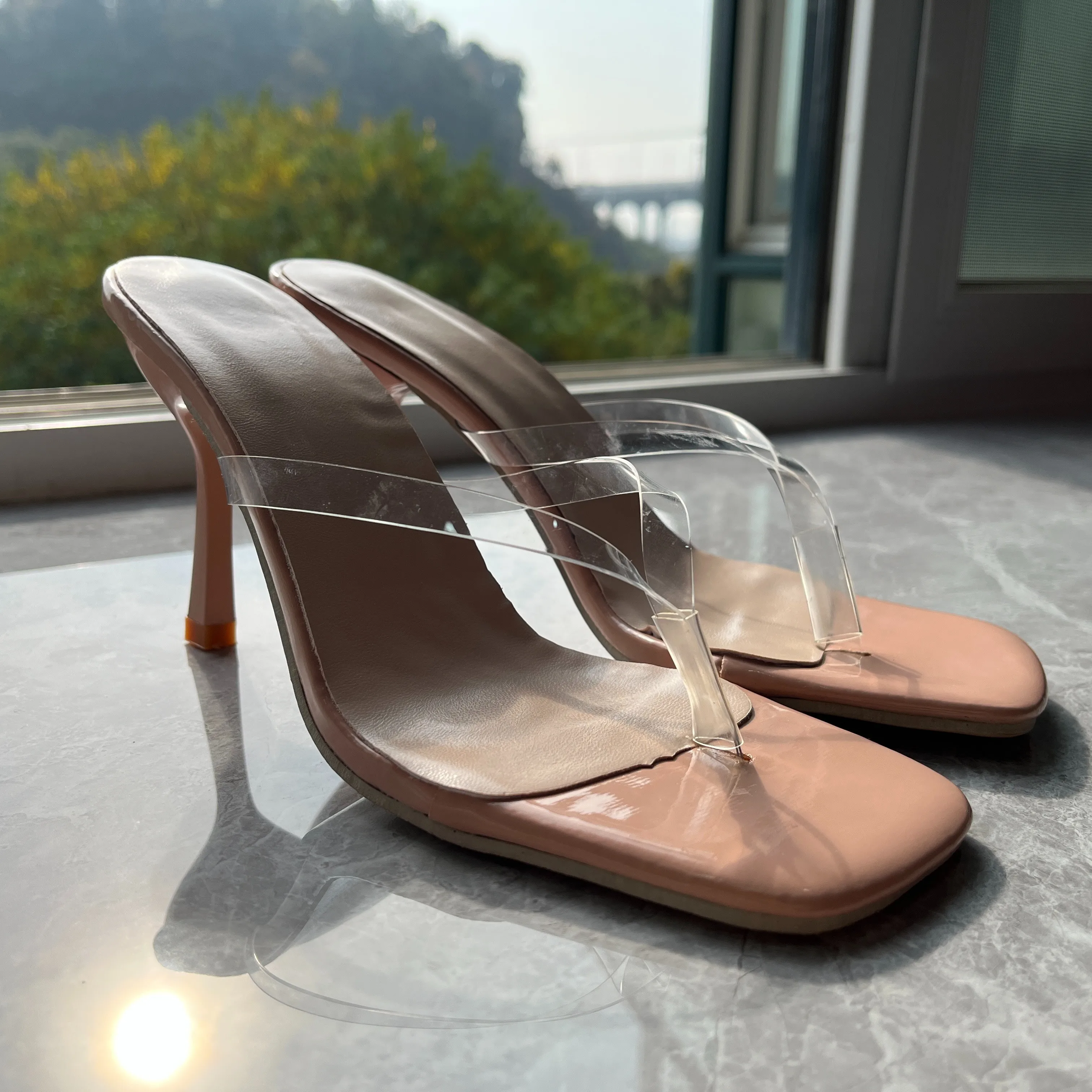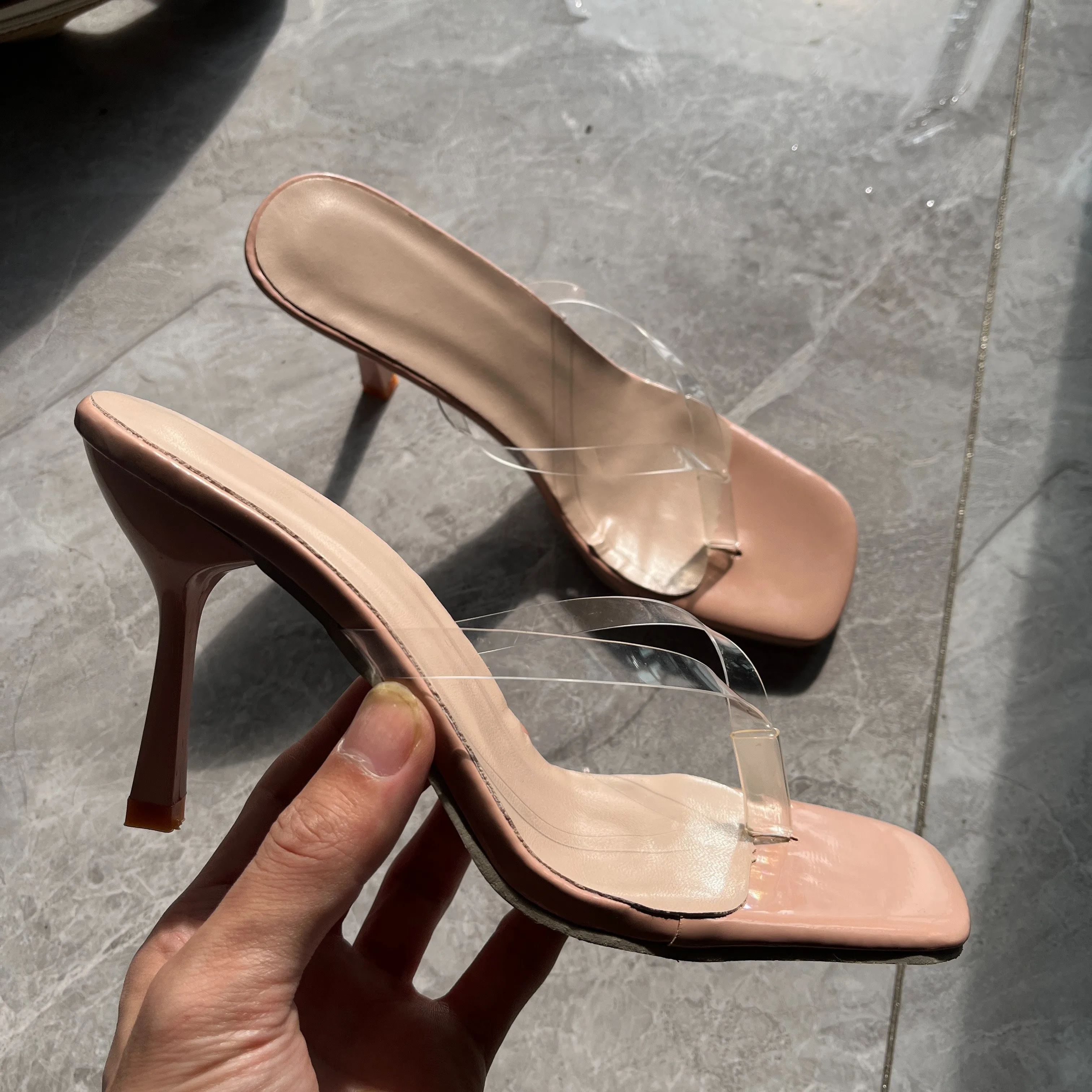 Шлепанцы женские прозрачные, квадратный носок, высокий каблук, сланцы, прозрачные сандалии-Желе, летняя обувь