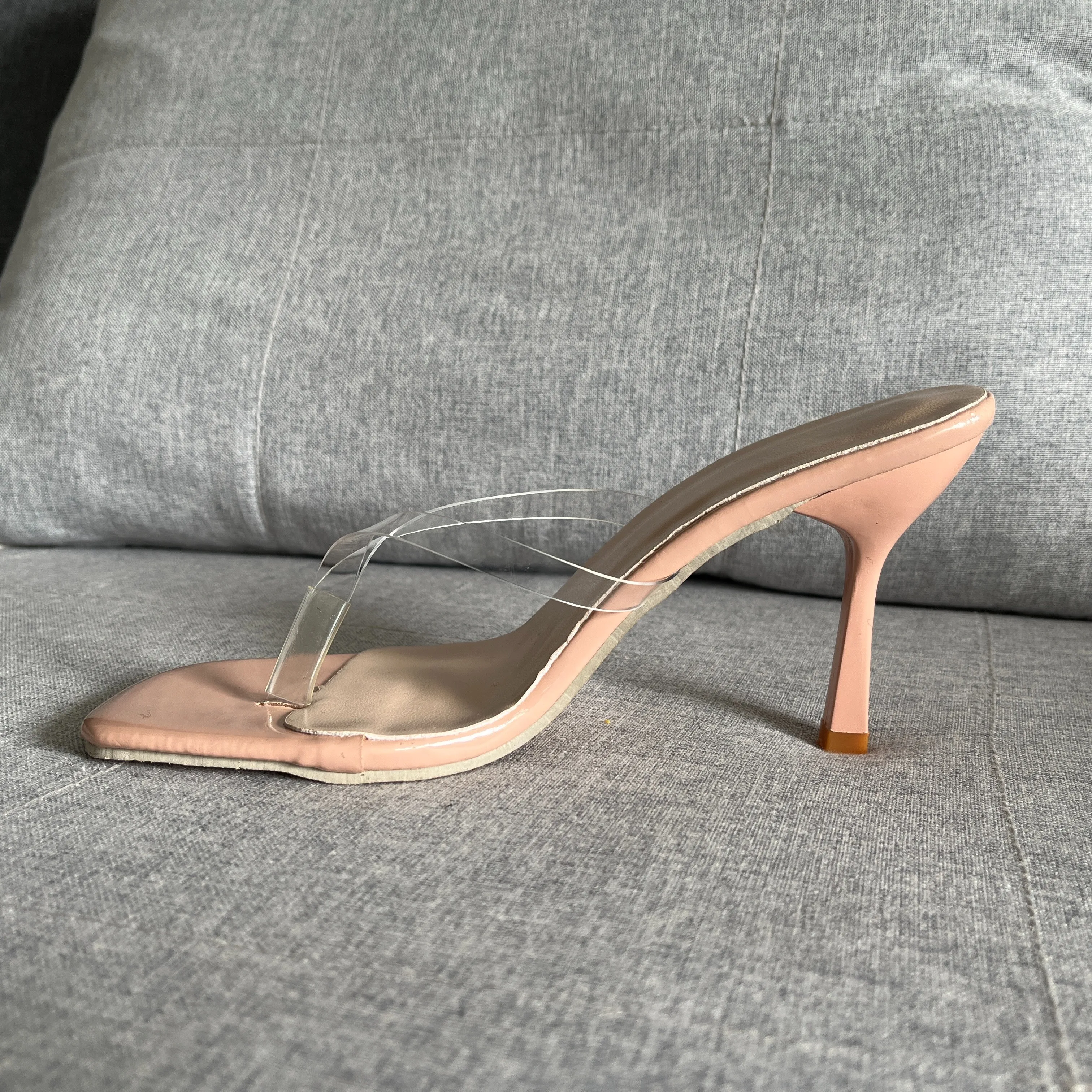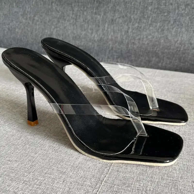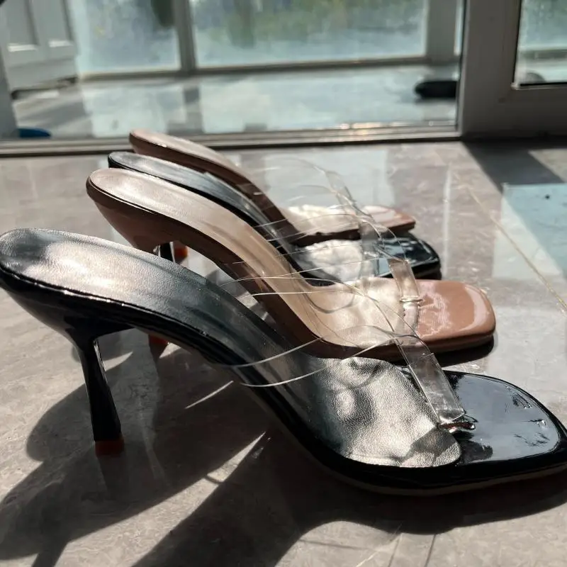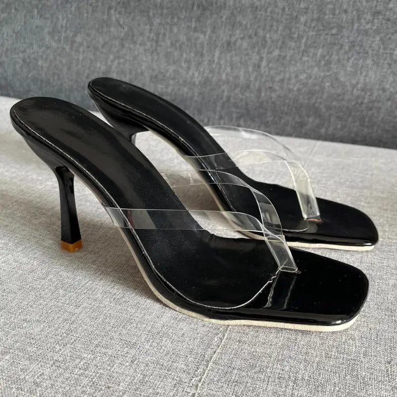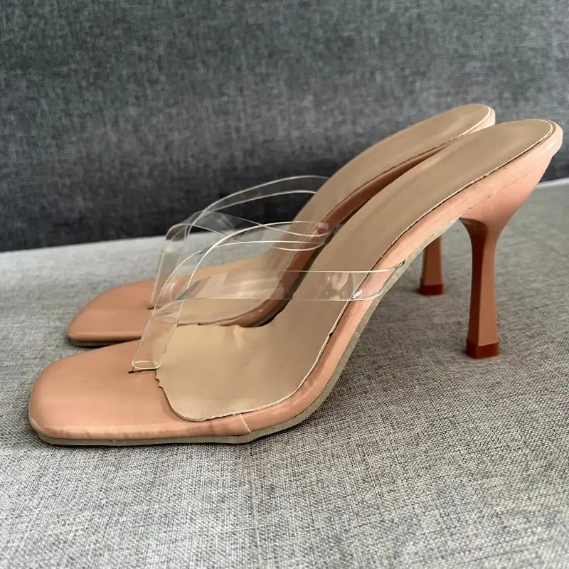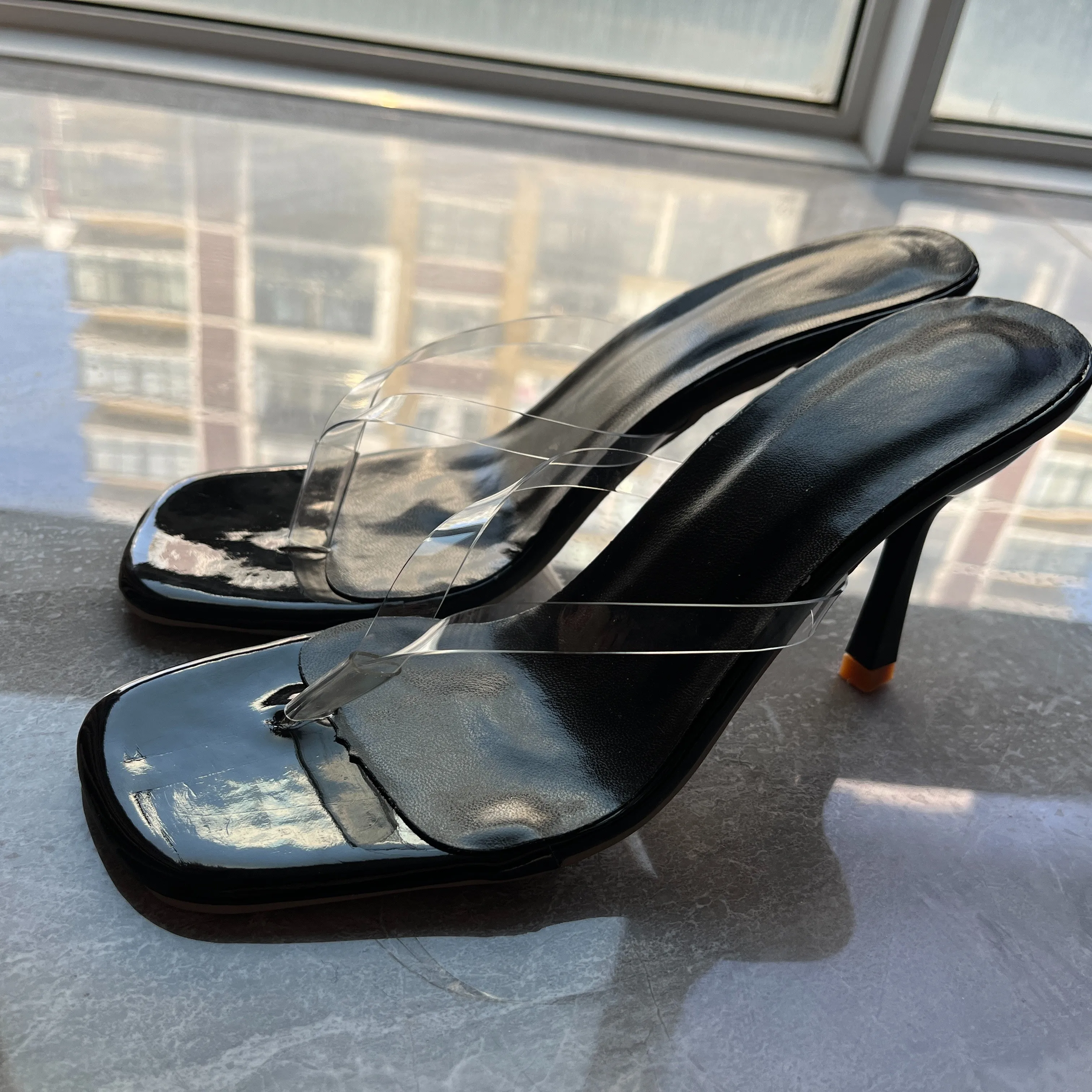 Шлепанцы женские прозрачные, квадратный носок, высокий каблук, сланцы, прозрачные сандалии-Желе, летняя обувь