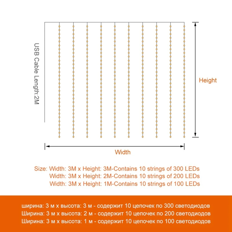 СВЕТОДИОДНАЯ Гирлянда-занавеска на окно, 3 м, USB, с дистанционным ...