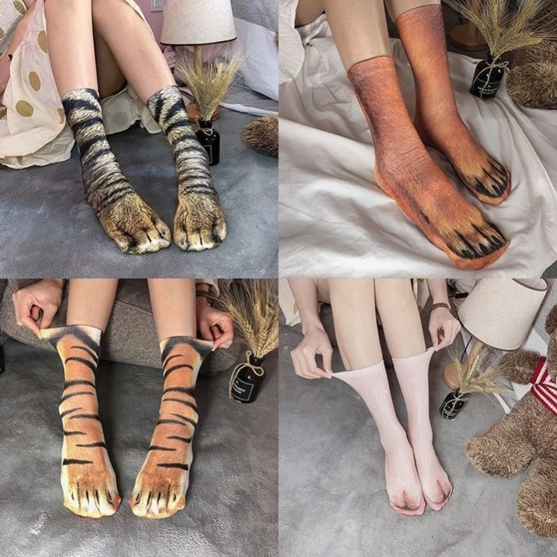 Оригинальные носки с 3D принтом в виде кошачьих лап, хлопковые носки с леопардовым принтом, тигром, уникальные носки унисекс, косплей-вечеринка с кошачьими лапами