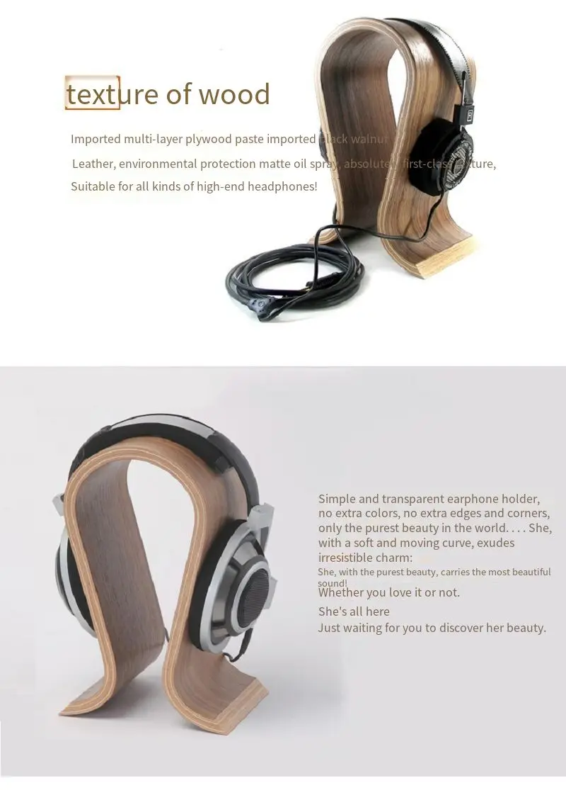 2022 Классическая подставка для гарнитуры с ореховой отделкой, деревянная подставка для наушников, U-образная Подставка для наушников для дома, офиса, студии, спальни