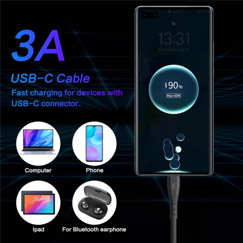 Кабель USB Type-C 3A для быстрой зарядки и передачи данных для Huawei P40 Pro P30 P20 Lite Honor 30 20 10 Lite Xiaomi Redmi Note 11 10 9 8 Pro 10X