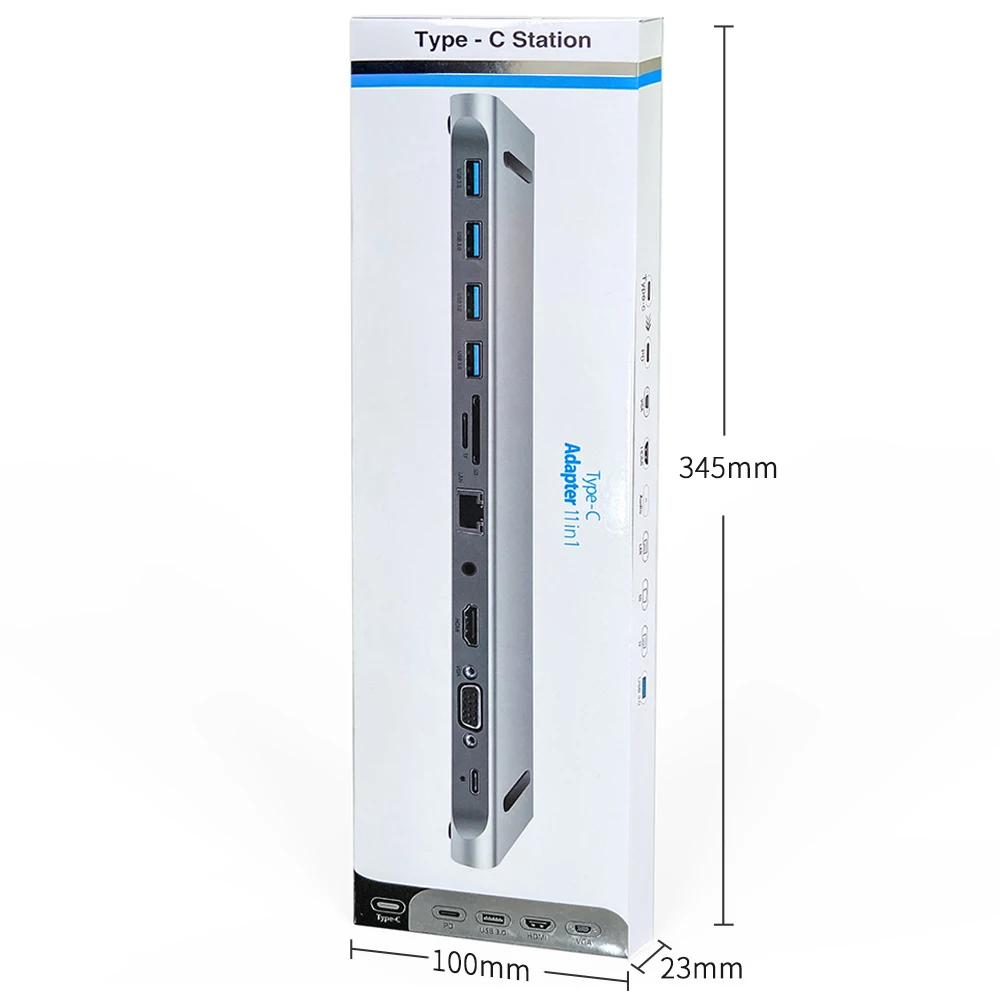 Док-станция 11 в 1, USB Type-C, 3,0 дюйма, HDMI, RJ45, SDTF