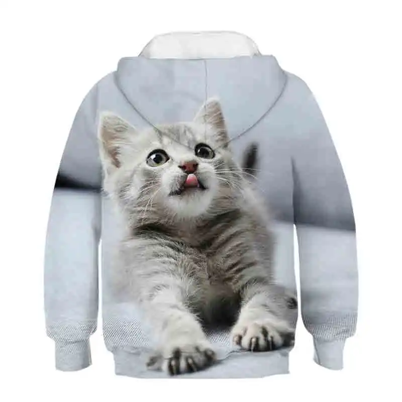 Модные толстовки с 3D рисунком животных для детей мальчиков и девочек Зимний пуловер с длинным рукавом с милым котом Забавный Свитшот детская одежда