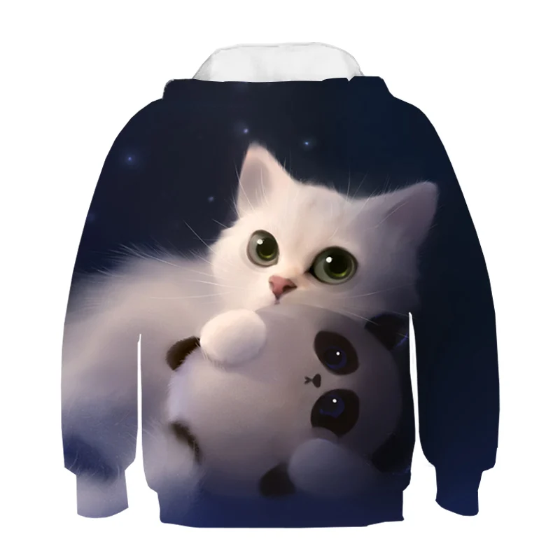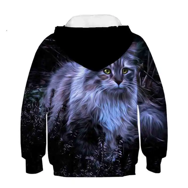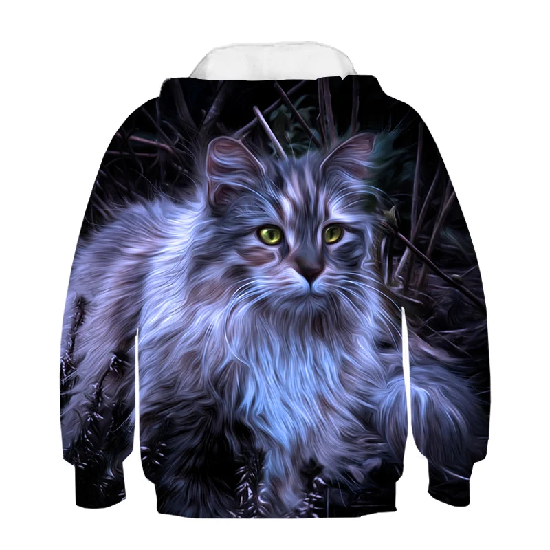 Толстовка с 3D рисунком кота, детские толстовки для мальчиков и дев...