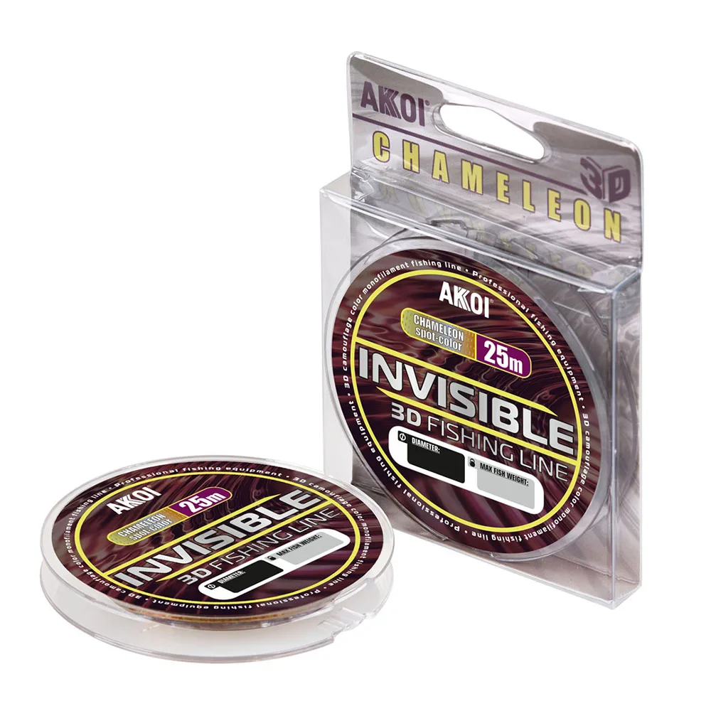 Леска для зимней рыбалки AKKOI INVISIBLE 3D 25м хамелеон монофильная рыболовная леска