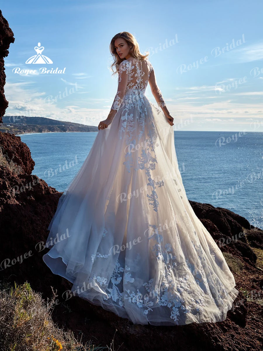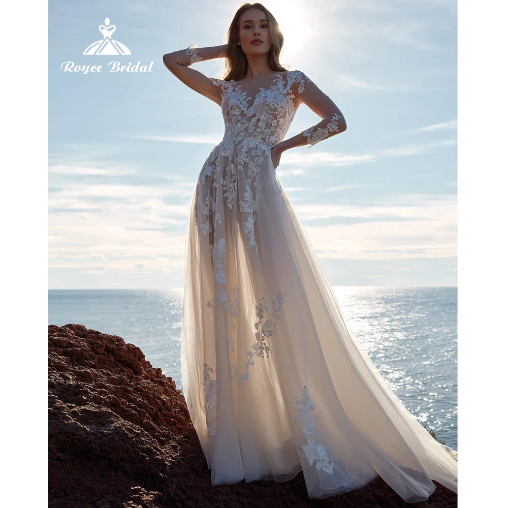 Платье Свадебное ТРАПЕЦИЕВИДНОЕ с рукавами три четверти и аппликацией