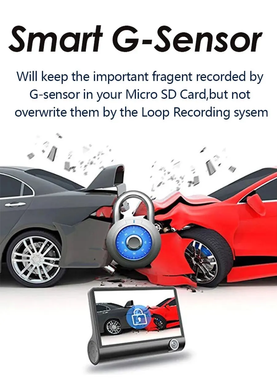 Встроенная система гравитационного зондирования, чувствительная чувствительность удара, автоматически блокирует видео в случае столкновения, чтобы предотвратить удаление.