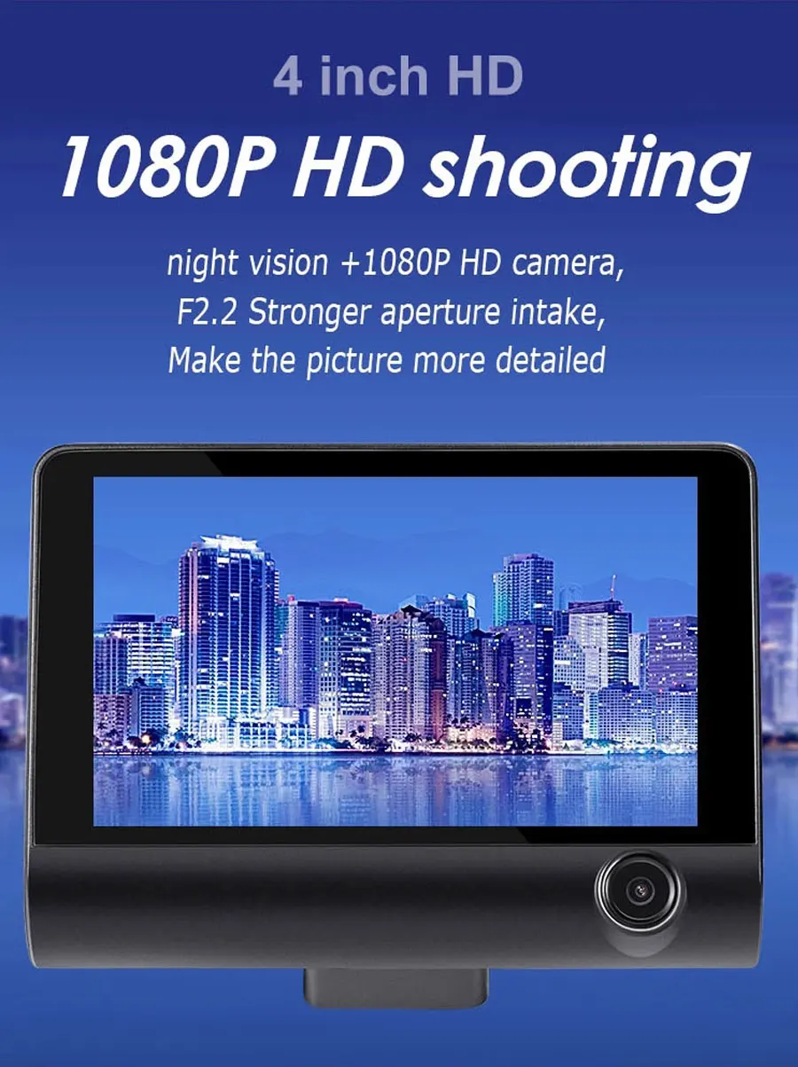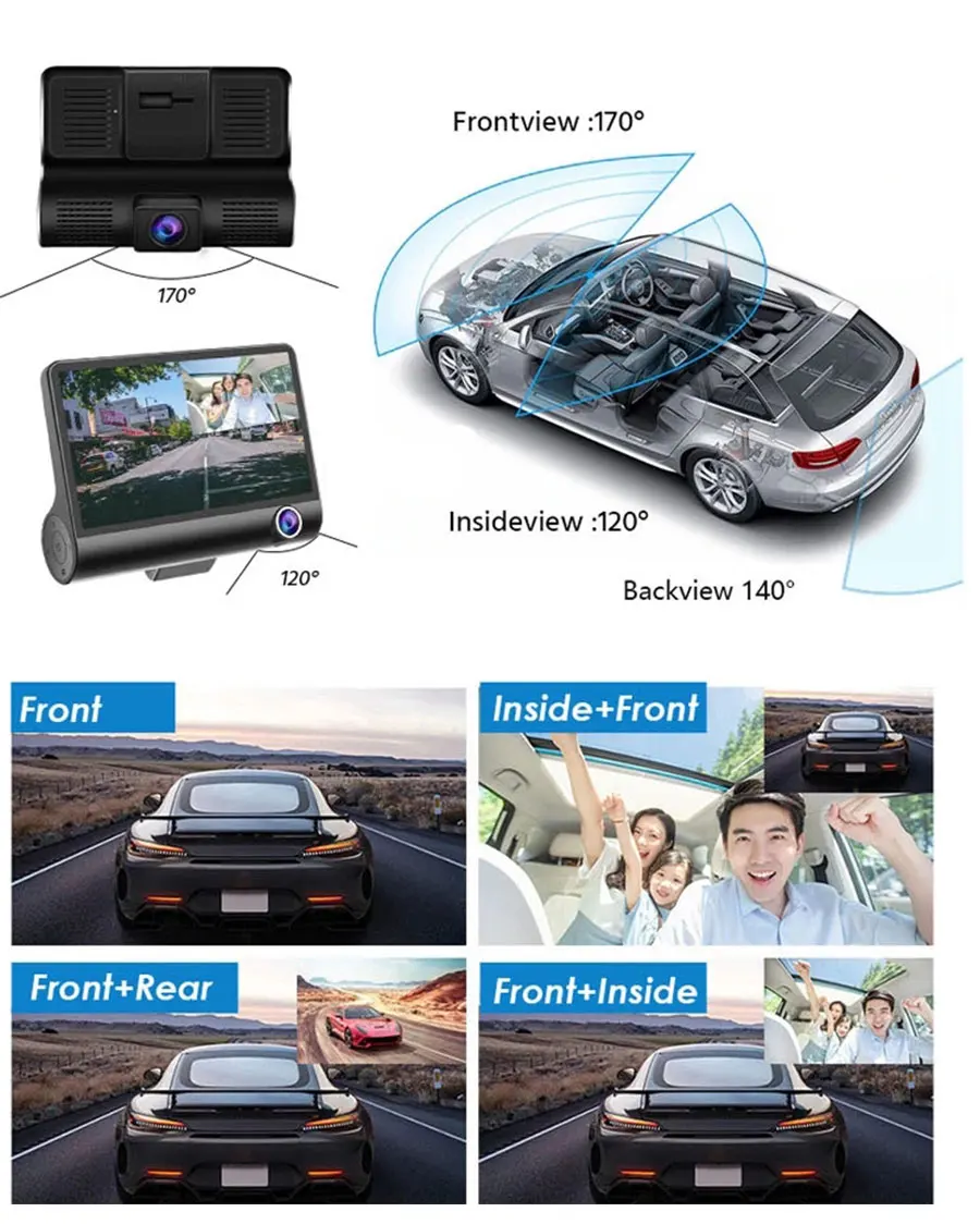 Автомобильный видеорегистратор, видеорегистратор HD 1080P, 3 объектива, 170 градусов, монитор заднего вида, парковочная камера, 4-дюймовый автомобильный видеорегистратор, регистратор, видеокамера