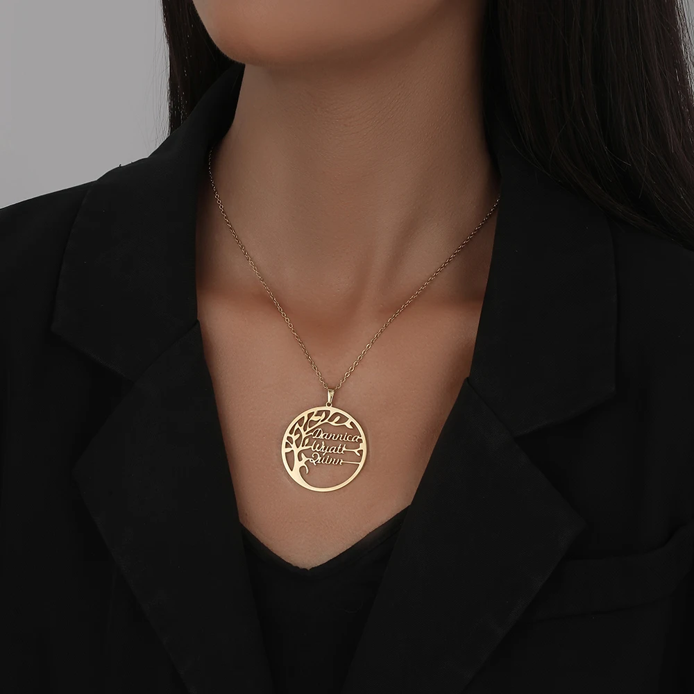 NEULRY оптовая продажа Прямая поставка персонализированные Семейные Древо жизни имя ожерелье из нержавеющей стали золотые буквы Индивидуальные ювелирные изделия