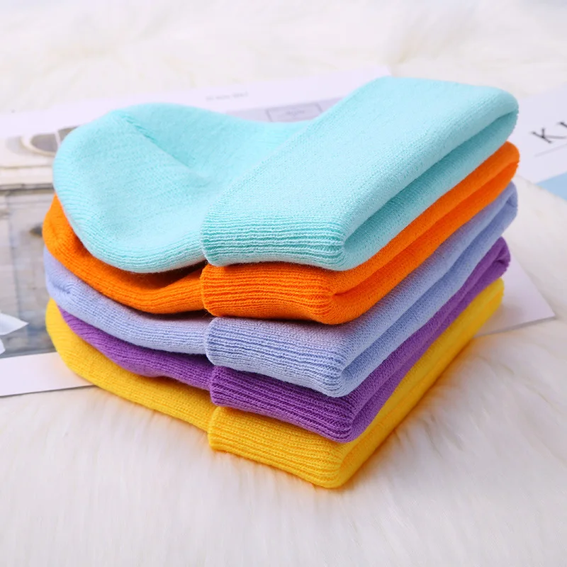 Зимние шапки для унисекс Новые шапки вязаные однотонные милые шапки женские осенние женские шапочки теплые шапочки мужские повседневные Шапки оптовая продажа