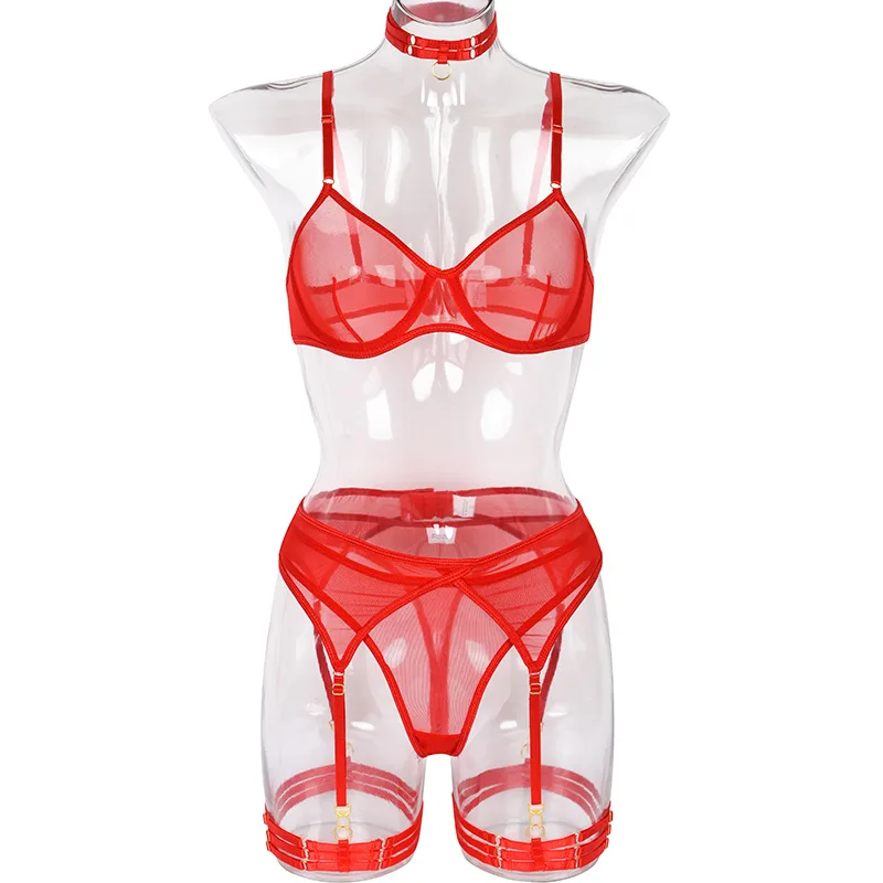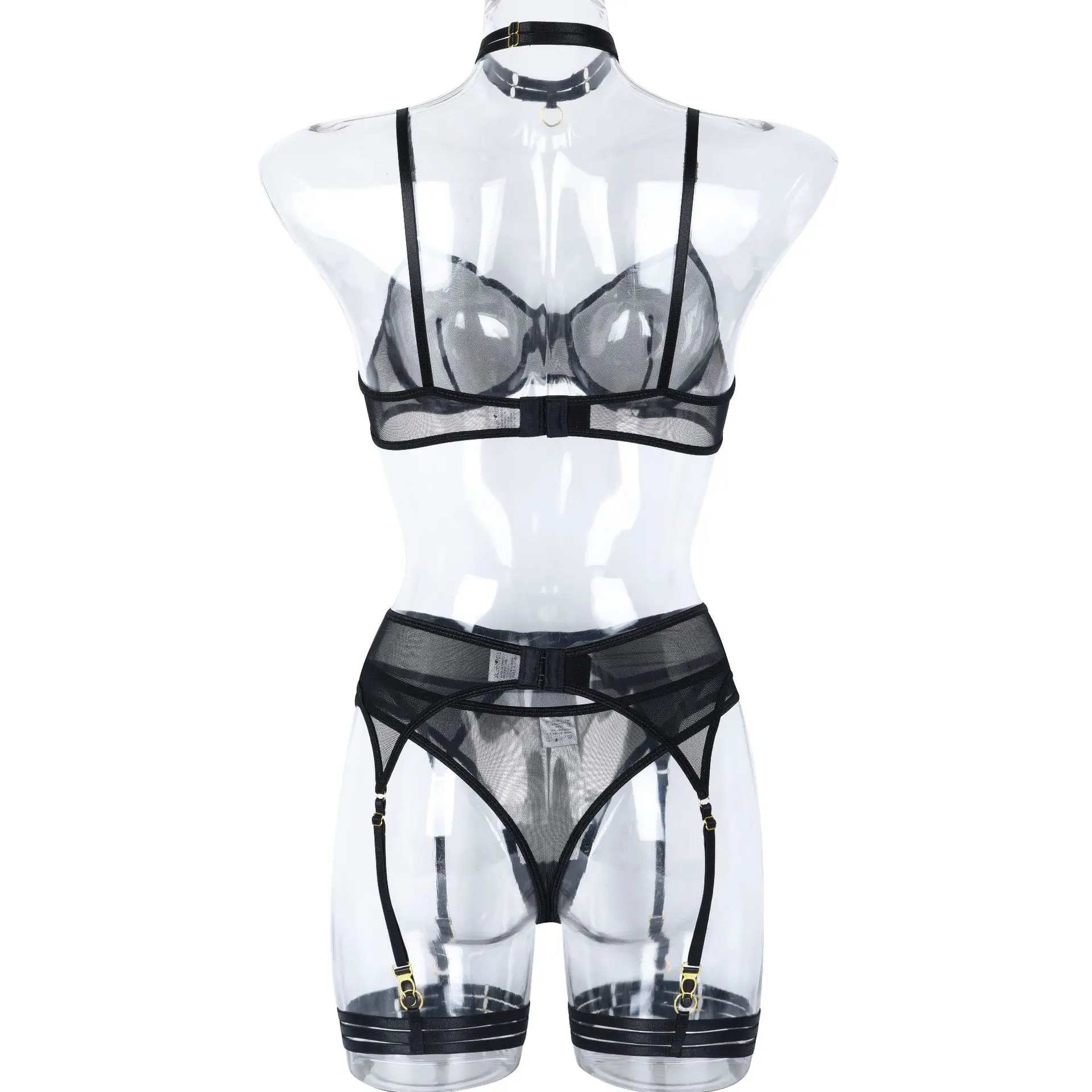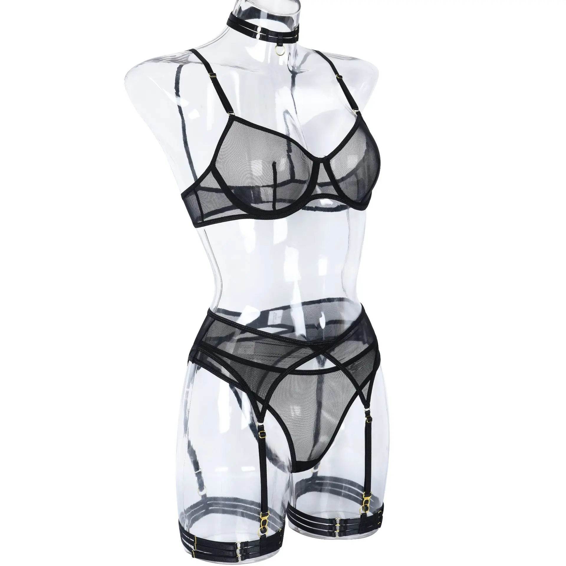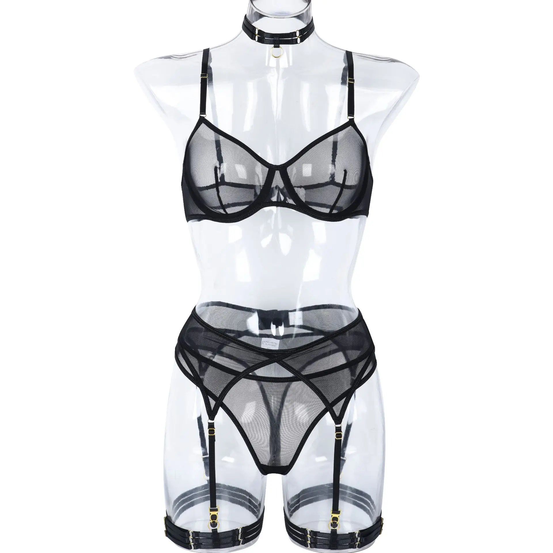 Сексуальное женское нижнее белье, новинка, женское модное сексуальное нижнее белье, колье с воротником, Сетчатое, чувственное белье, собранные бюстгальтеры, подвязки, леггинсы, 4 шт./компл.
