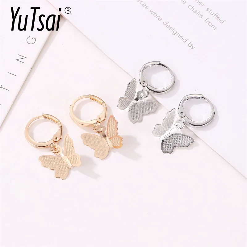 Новинка, корейские модные серьги-кольца YUTSAI, женские медные матовые серьги-подвески в виде бабочки, элегантные красивые серьги YT063