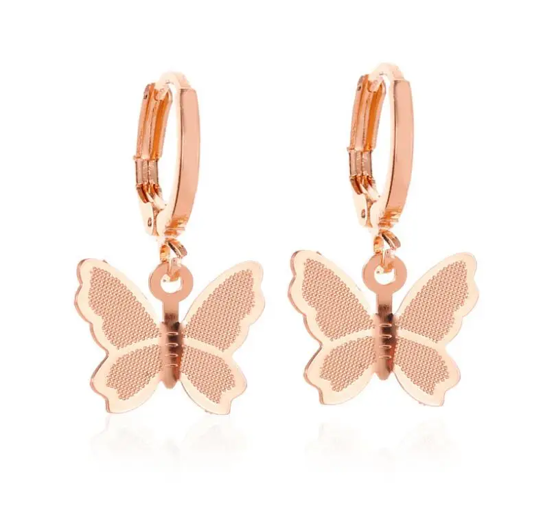 Милые серьги-подвески с матовой бабочкой, модные серьги золотого и ...