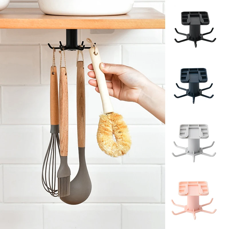 Кухонный Органайзер с возможностью поворота на 360 градусов самоклеющиеся крючки для ванной комнаты настенный дверной подвесной Стеллаж с 6 крючками