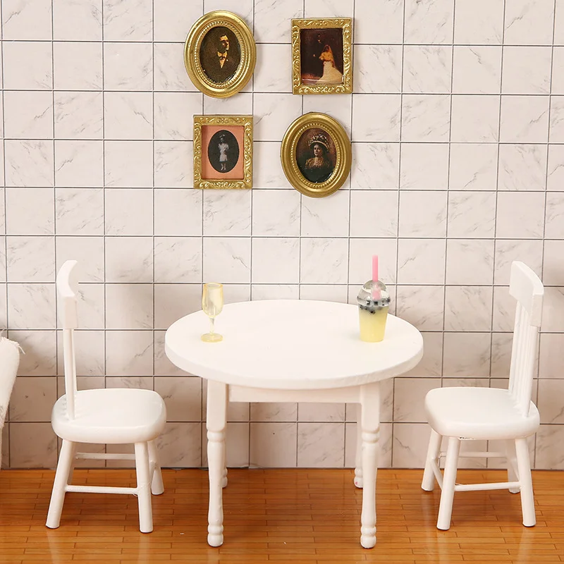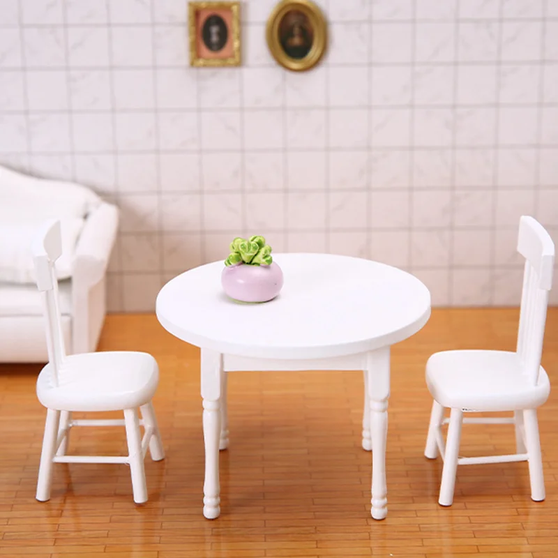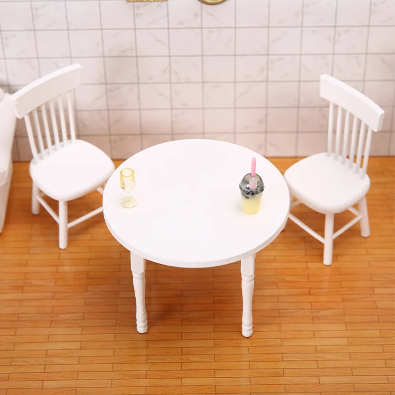 Миниатюрный Кукольный домик, модель стула, украшение для кукольного дома, кукольный домик, белый круглый стол
