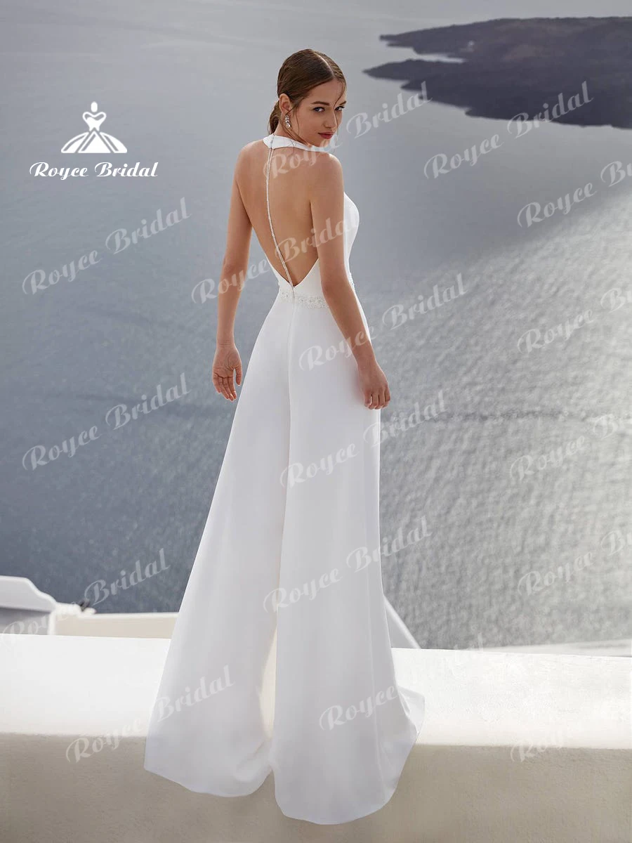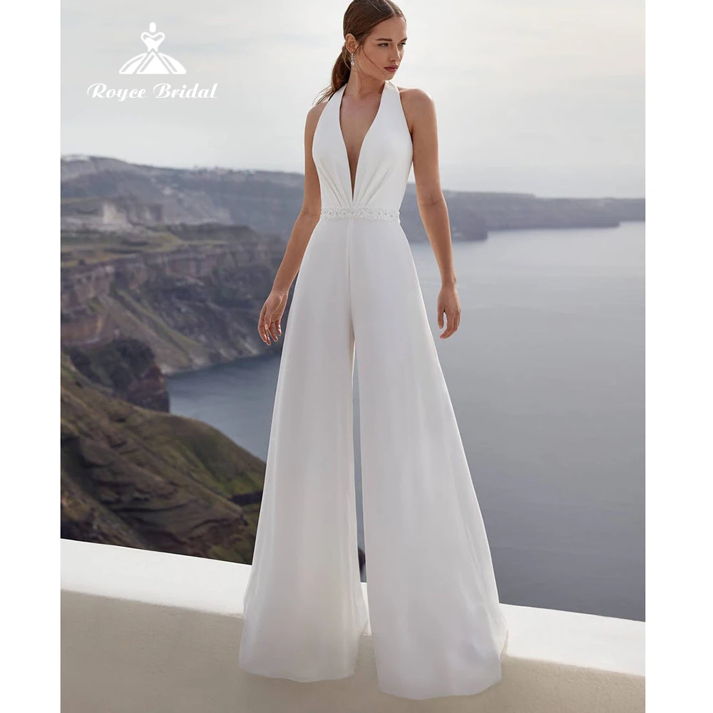 Женский шифоновый комбинезон с лямкой на шее, с глубоким V-образным вырезом, поясом и бусинами, до щиколотки