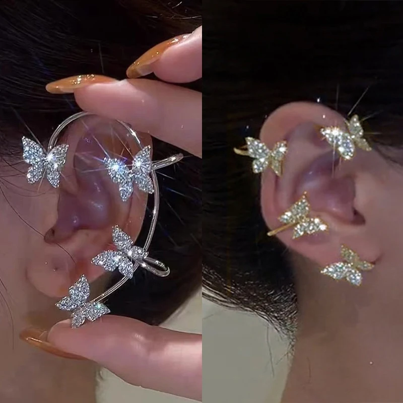 Блестящие циркониевые манжеты для ушей в виде бабочки, зажим для уш...