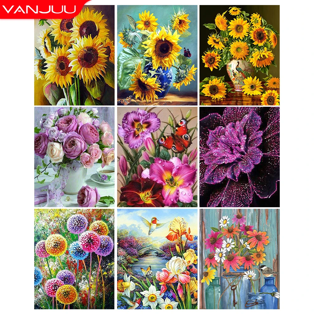 VANJUU 5D алмазная живопись, цветы, круглые бриллиантовые фотонабор...