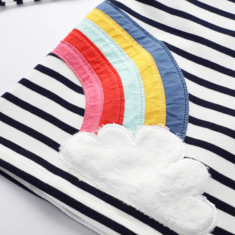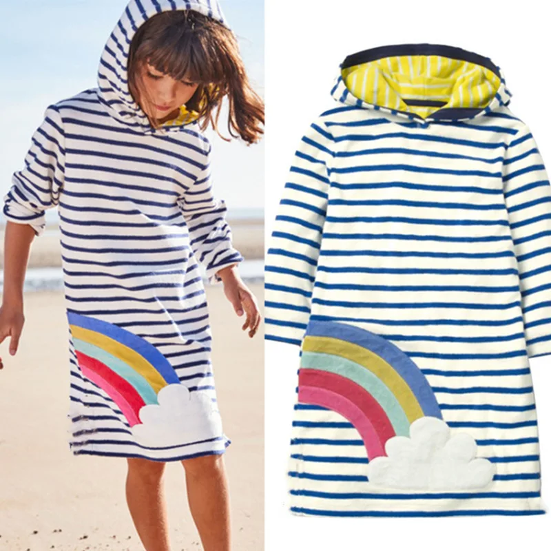 SAILEROAD/Радужное платье с капюшоном и вышивкой для девочек; Топы для детей; Одежда; Сезон осень-зима; Детские платья с длинными рукавами и капюшоном; Vestidos