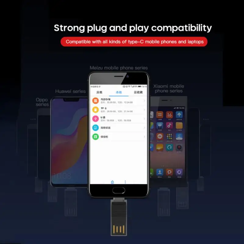 Подключи и играй, сильная совместимость, Совместимость со всеми типами мобильных телефонов и ноутбуков type-C, и вы можете напрямую получить доступ к данным без мобильных телефонов с приложением.