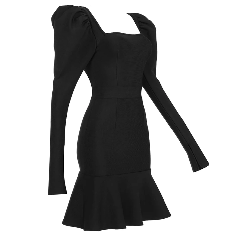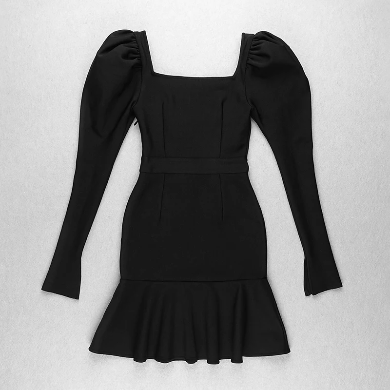 Женское зимнее сексуальное черное Плиссированное облегающее мини-платье с длинным рукавом и квадратным вырезом, элегантное вечернее праздничное платье, 2021
