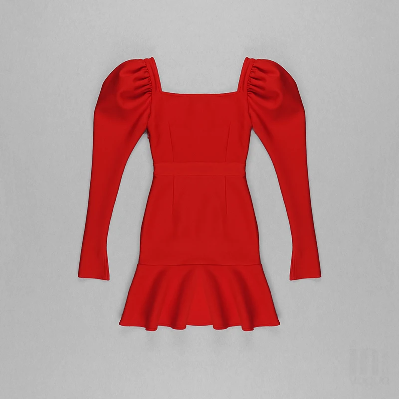 Платье с длинным рукавом, облегающее элегантное платье с квадратным...
