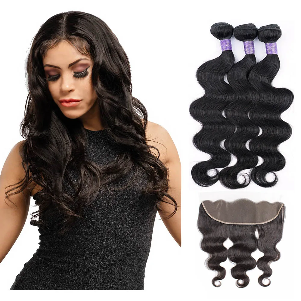 60 звёзд, 3 пряди с 13x4 застежкой спереди, прозрачные человеческие волосы без повреждений, волнистые черные бразильские волосы для наращивания