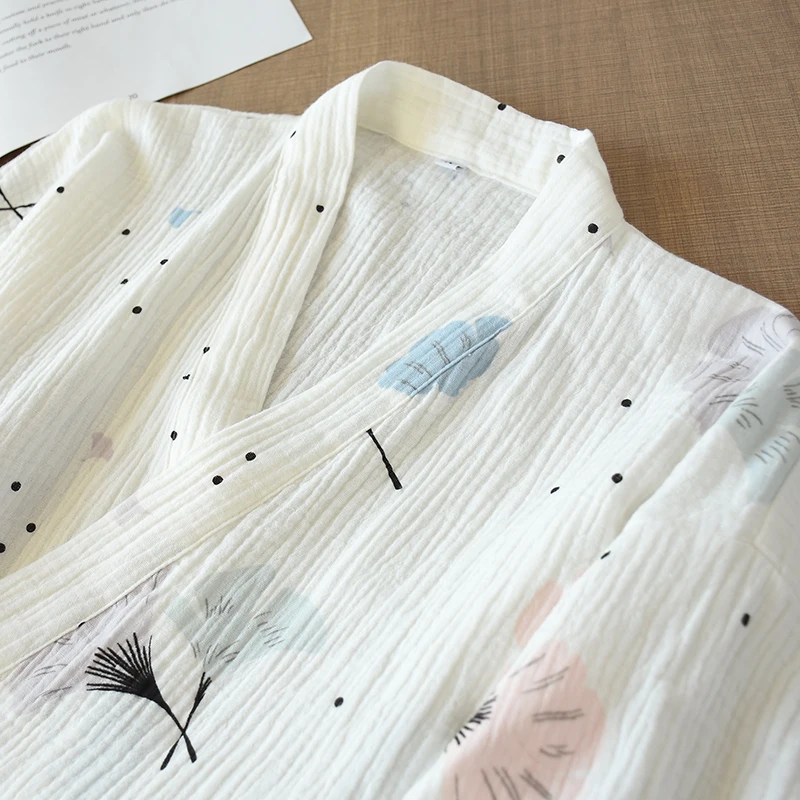 Кимоно из чистого хлопка, пижама с V-образным вырезом, женская одеж...