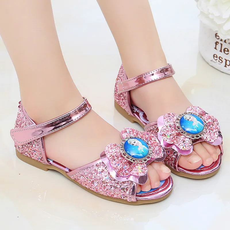 Ботинки принцессы для маленьких девочек, летние сандалии для детей, кожаные блестящие танцевальные сандалии стразы с блестками и бантом, обувь для вечеринки