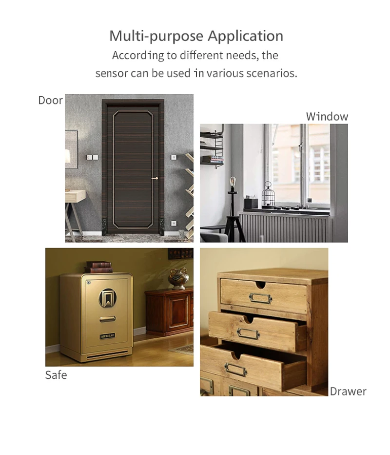 5. Простая установка с двусторонней лентой, просто приклейте ее куда угодно, чтобы защитить безопасность вашего дома. Сделайте интеллектуальную связь с другими смарт-устройствами для достижения комплексной идеи интеллекта.