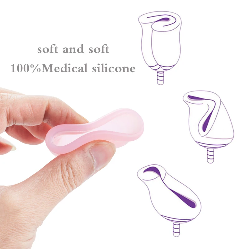 1. Перед обработкой менструальной чашки убедитесь, что ваши руки тщательно чистятся.2. Стерилизовать чашку перед первой вставкой.3. Рекомендуется вставлять чашку в любое из следующих позиций: сидя, приседая, опускаясь на колени или стоя, попробуйте одну из этих позиций и выберите наиболее подходящую для вас.4. Чтобы облегчить вставку, вы можете увлажнить чашку водой или смазочным гелем при необходимости.5. Захватите чашку пальцами и нажмите.6. Затем Сложите чашку пополам, используя пальцы другой руки.7. Удерживайте чашку пальцами одной руки в максимально низком положении.8. Аккуратно вставьте чашку во влагалище в сторону спины.9. Правильное положение чашки ниже, чем тампоны. После введения во влагалище отпустите пальцы и дайте чашке полностью разворачиваться и приклеиться к вагинальной стенке.10. Вы можете дезинфицировать до и после использования.