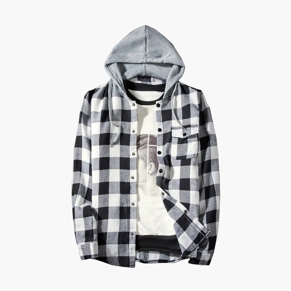 Хлопковая рубашка в клетку с капюшоном, Повседневная Уличная одежда...