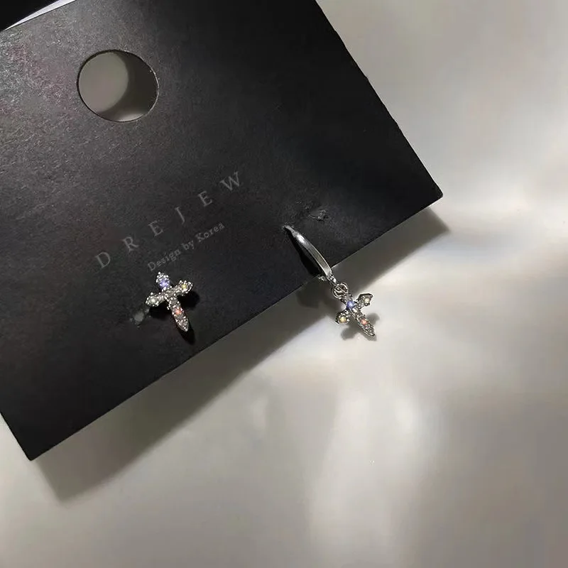 Название модели: женские асимметричные серьги-гвоздики с крестом, новый тренд, модные корейские серьги для пирсинга с крестом, ювелирные изделия в стиле хип-хоп, аксессуары Gif