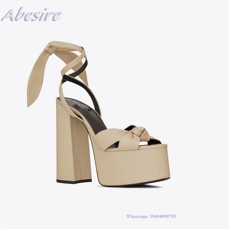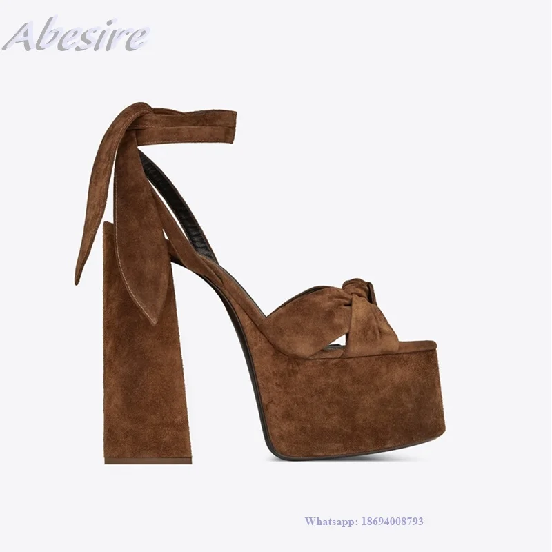 Женские босоножки Abesire на платформе, замшевые сандалии на высоком каблуке, с ремешком на щиколотке, бежевые, на лето