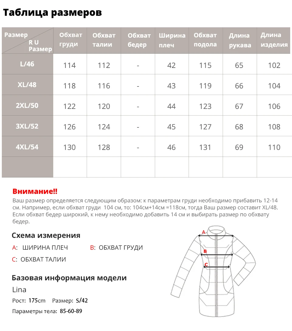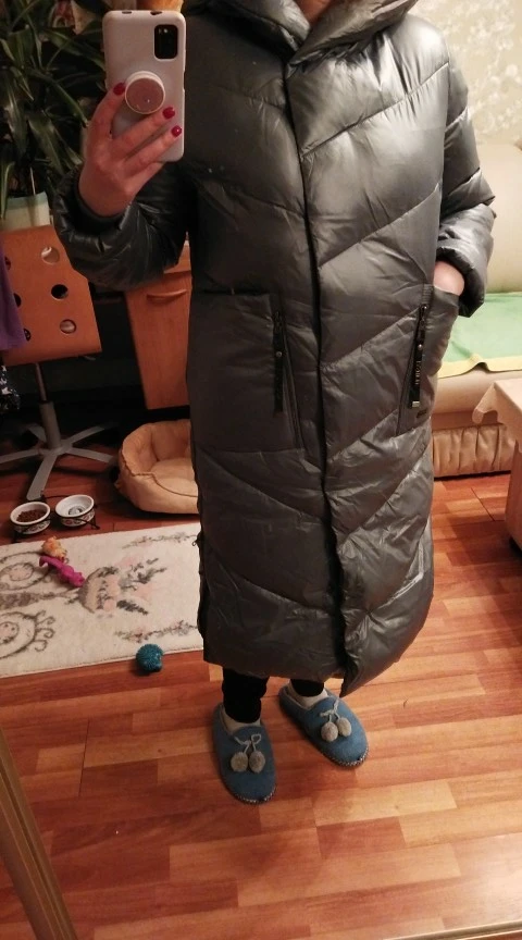 пуховик, как и ожидалось, отличный, это второй заказ в этом магазине, первая парка осенняя- очень понравилась, но по совету продавца взяла 54 размер и она мне оказалась великовата, пришлось ушивать поэтому с этим пуховиком я не советовалась а взяла по размерам таблицы 52 размер и он сёл на меня просто отлично только рукава длинные, но их можно отвернуть манжетом. Вобщем отличный магазин хороший пошив и фурнитура
