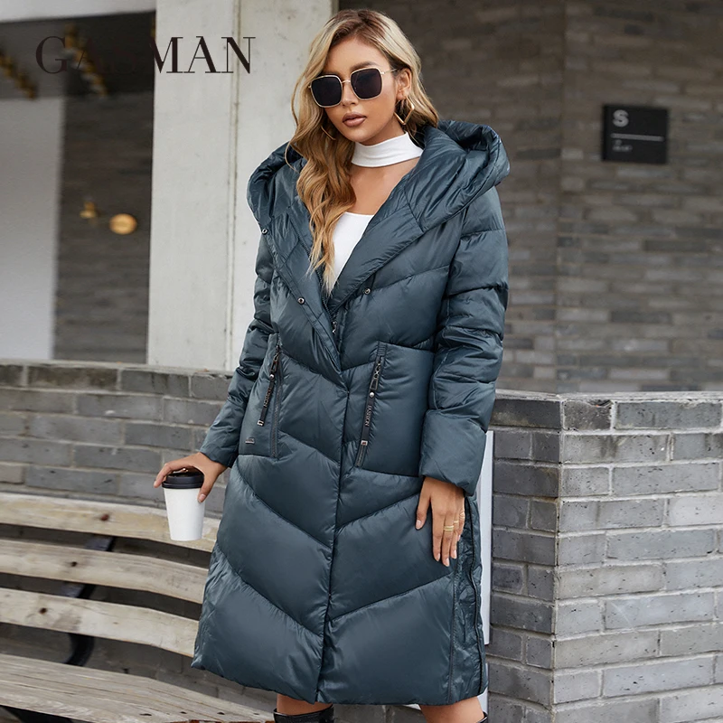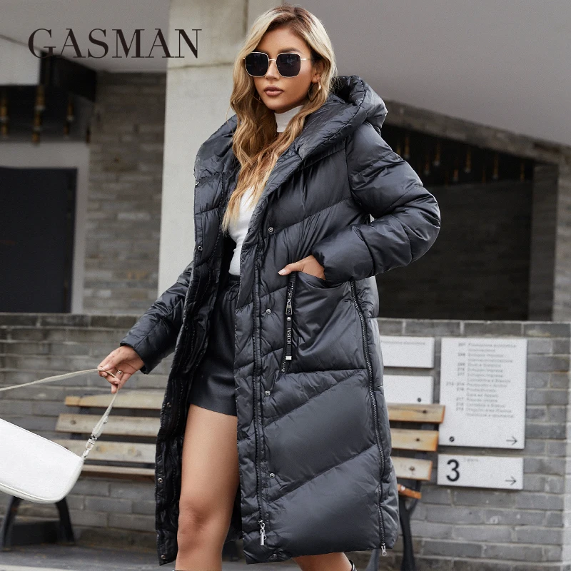 GASMAN 2022 Новая женская зимняя куртка длинные пальто с капюшоном женские модные теплые парки брендовые высококачественные женские пуховики