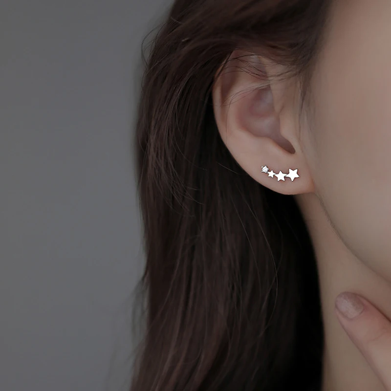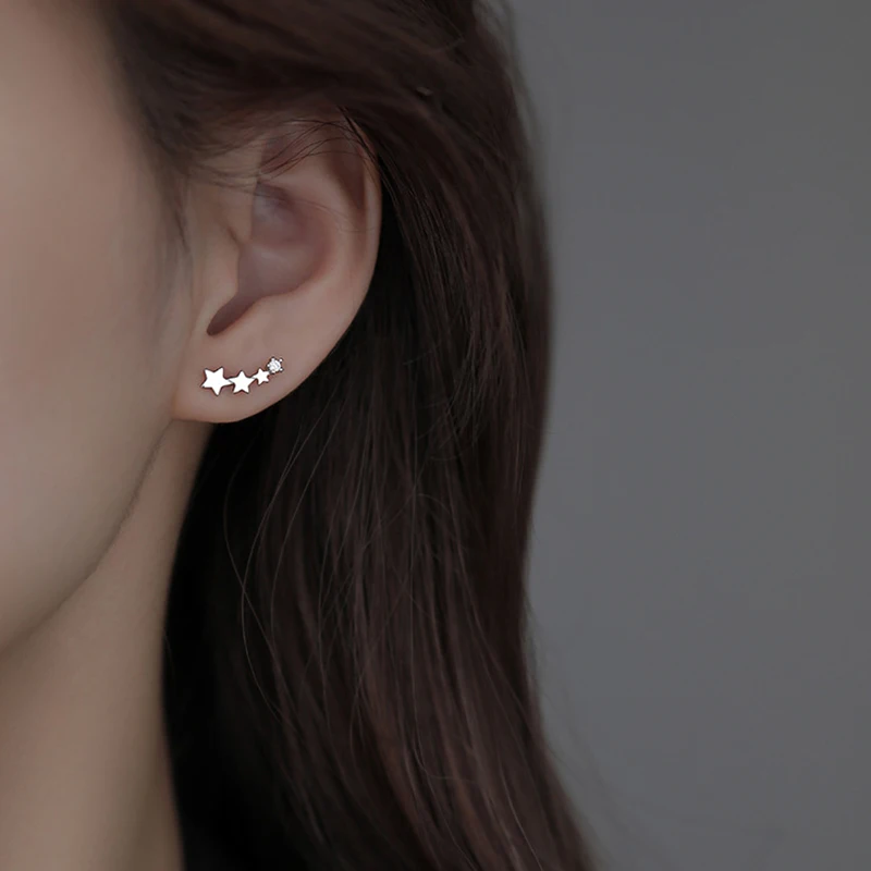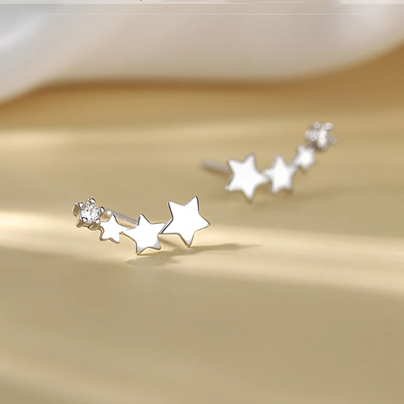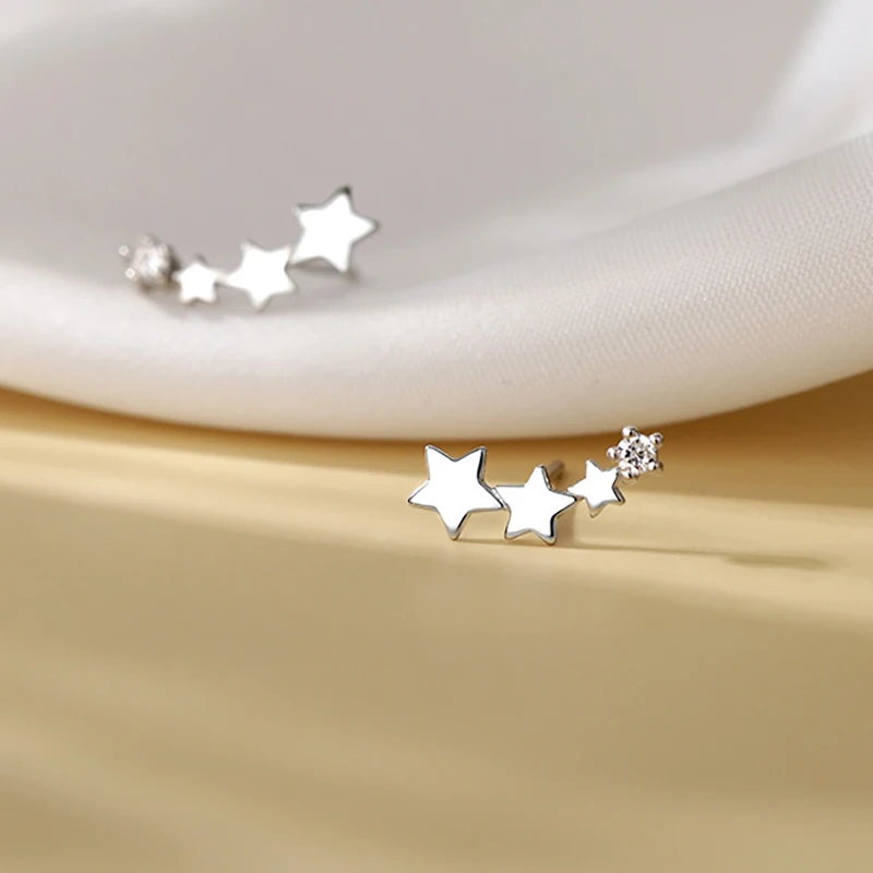 Серьги из стерлингового серебра 925 пробы, японские серьги с пятиконечной звездой и инкрустированными кристаллами, маленькие женские серьги для банкета