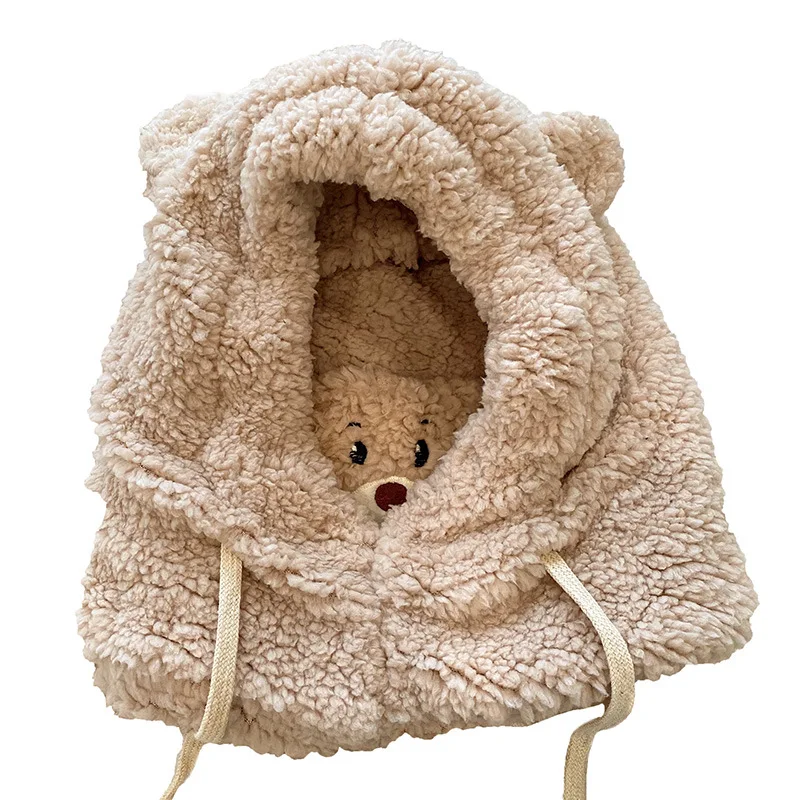 Шапка с мультяшным медведем, женская зимняя шапка, шарф, ветрозащит...