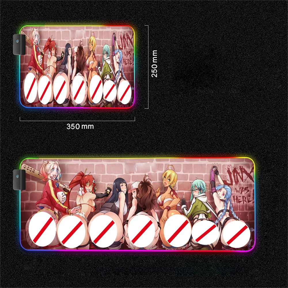 Коврик для мыши с аниме-рисунком, игровой компьютерный коврик с подсветкой, 7 цветов, RGB, пикантная большая задница, USB, клавиатура, аксессуары для игр, Настольный коврик