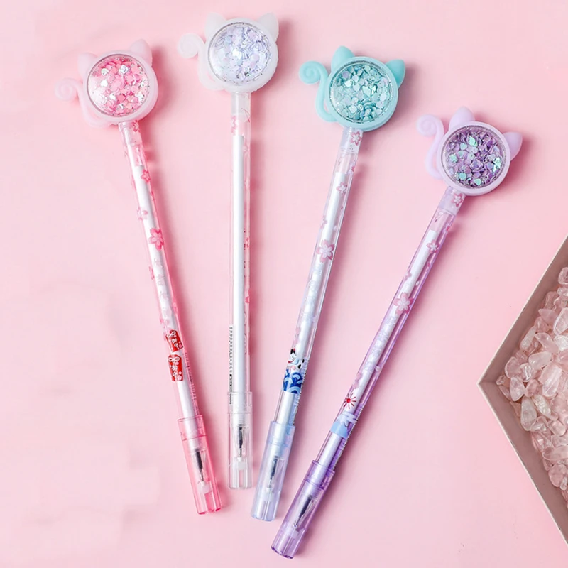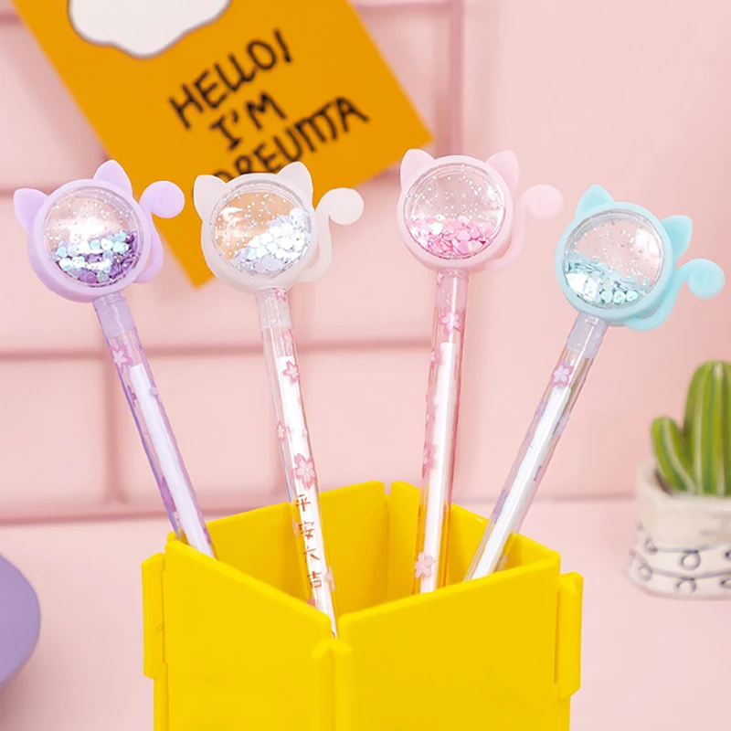 40 шт./упак. креативные милые ручки модный Кот блесток Funny гелевая ручка симпатичная магазина канцелярских принадлежностей письма чернилами Back to School канцелярских товаров
