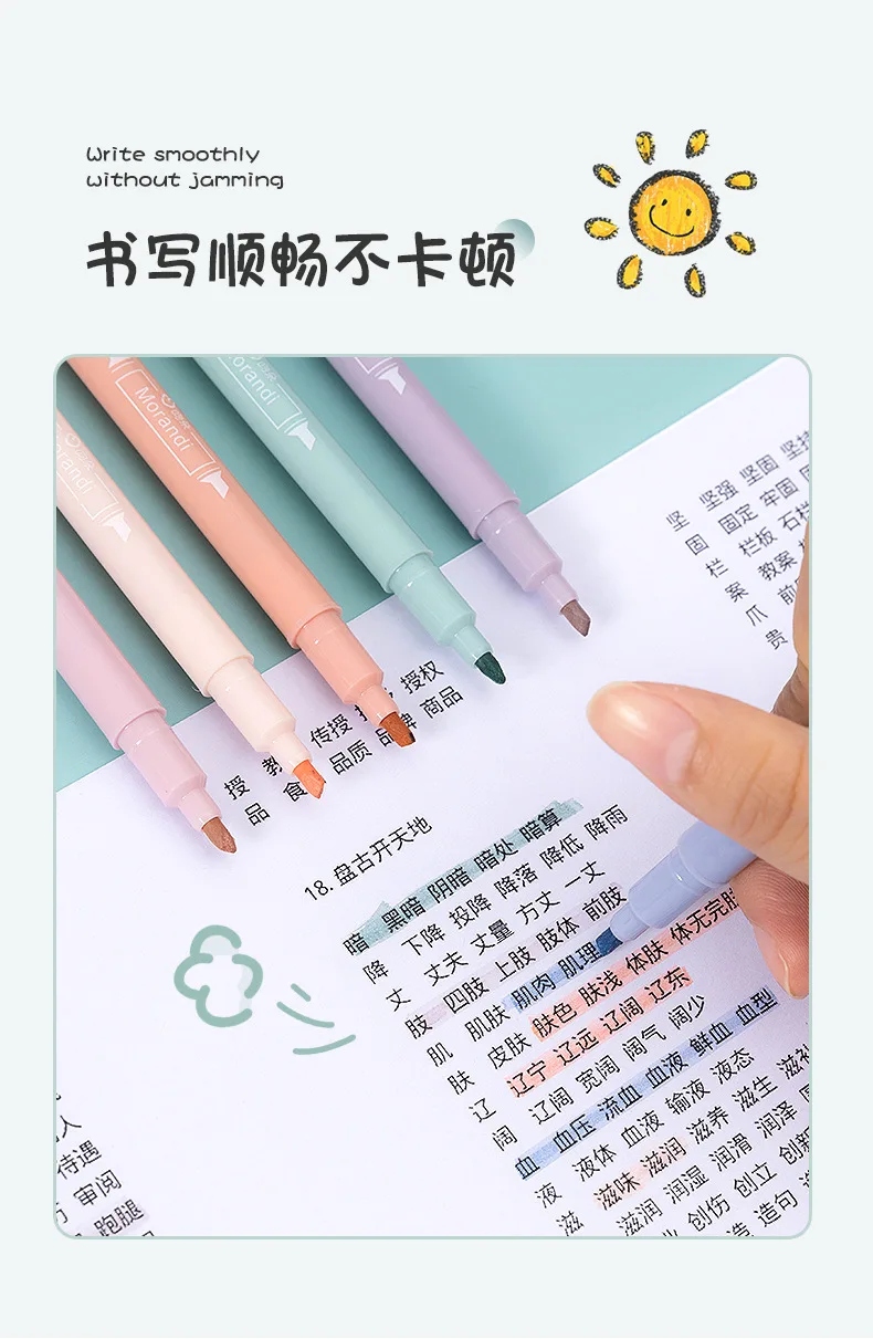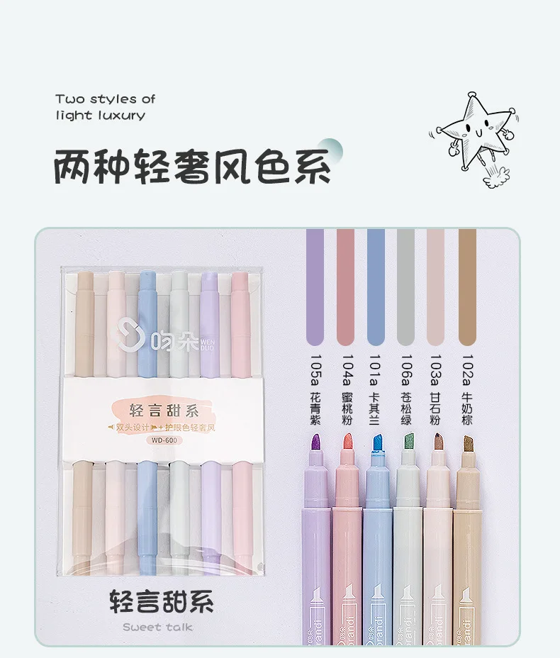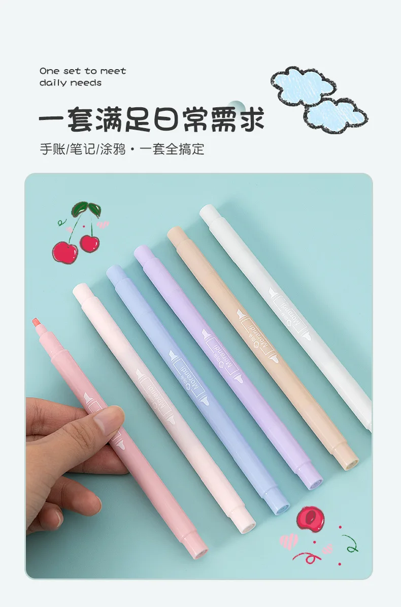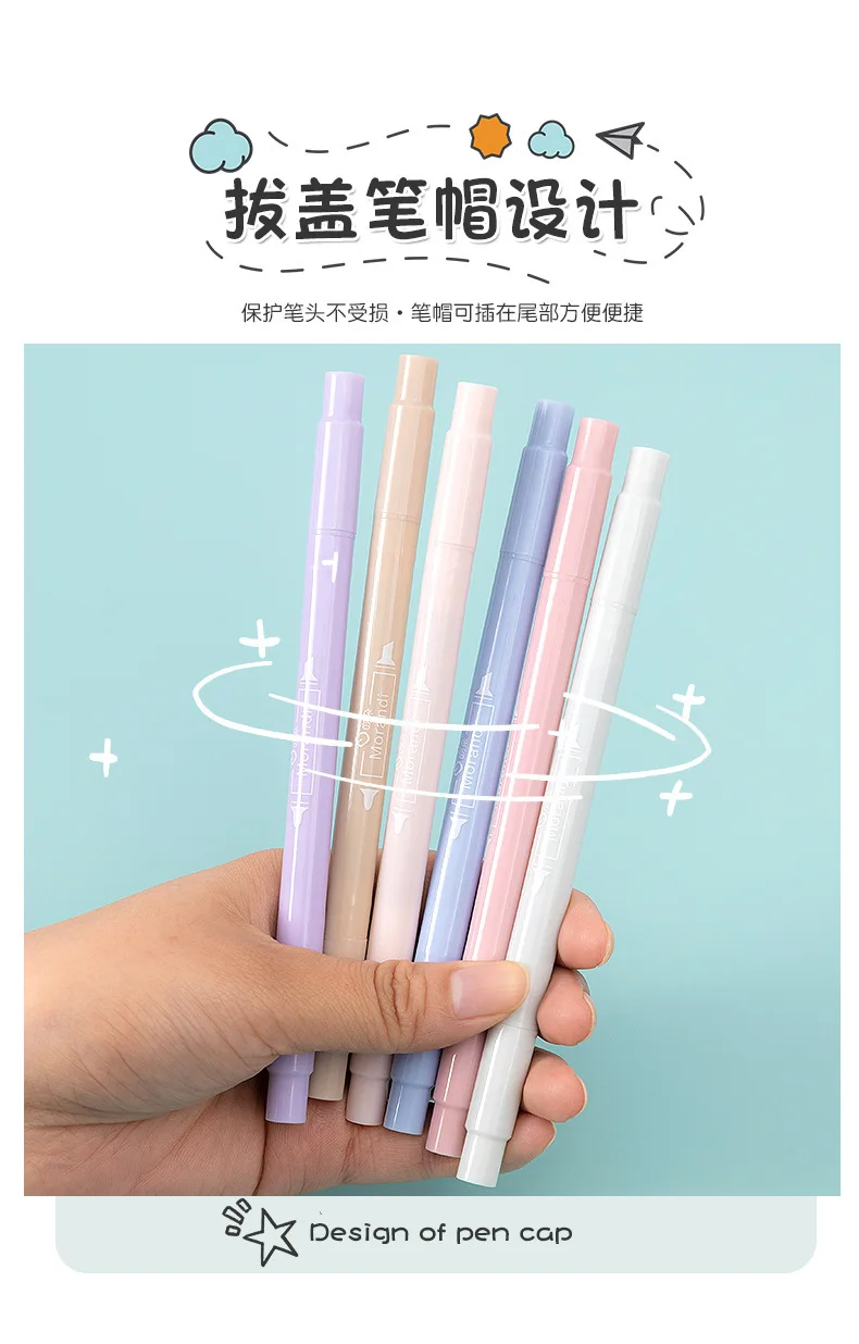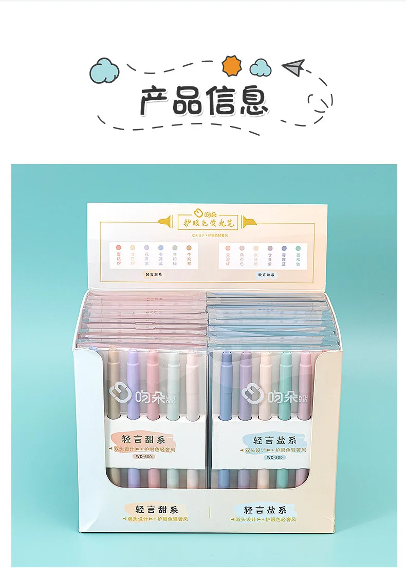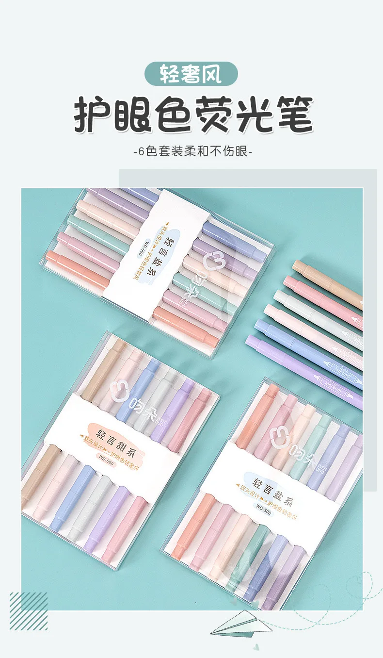 6 цветов, пастельные хайлайтеры, двойной наконечник, хайлайтер, ручка с кисточкой, защита глаз, маркер, школьные принадлежности, канцелярские принадлежности