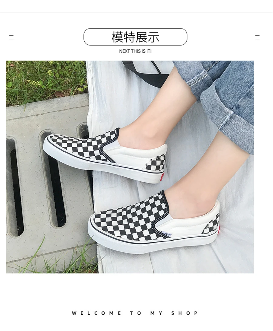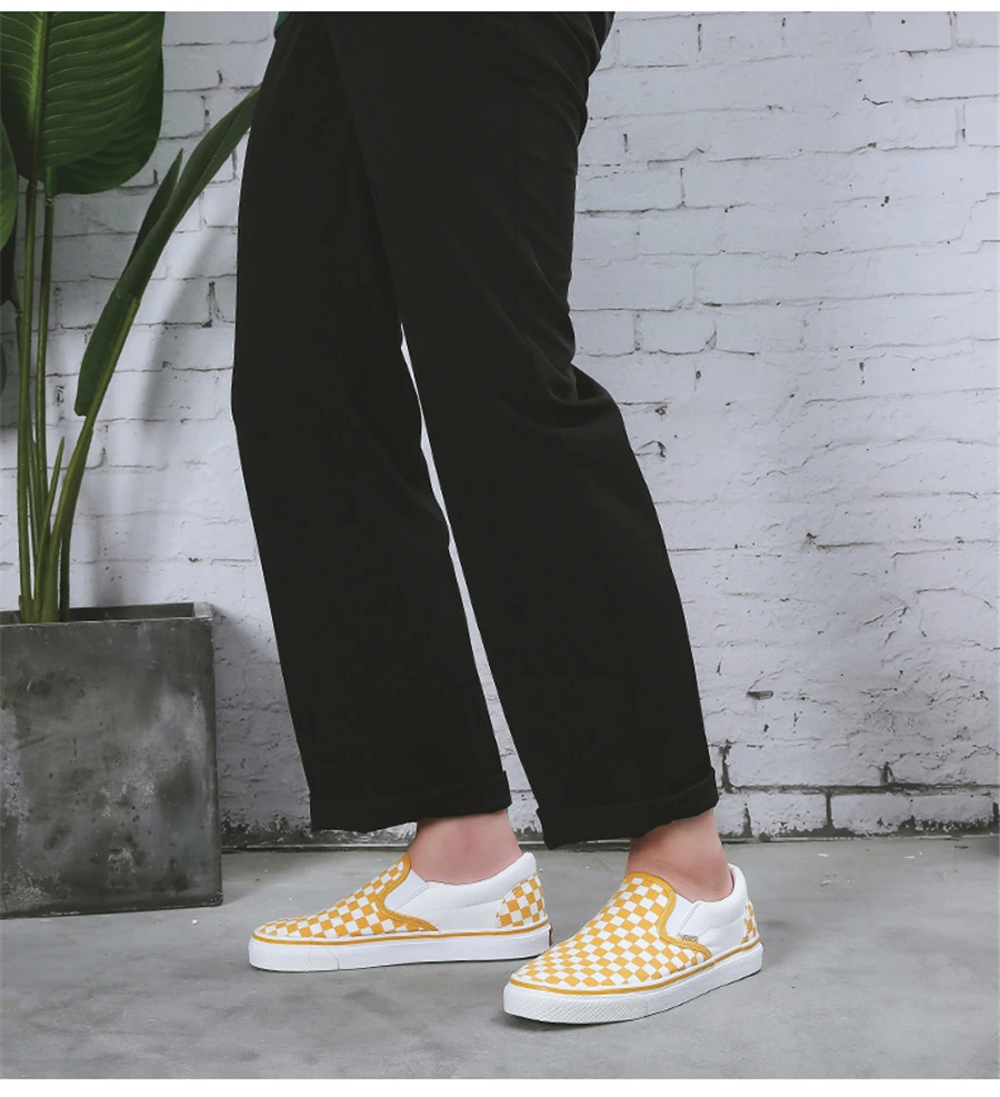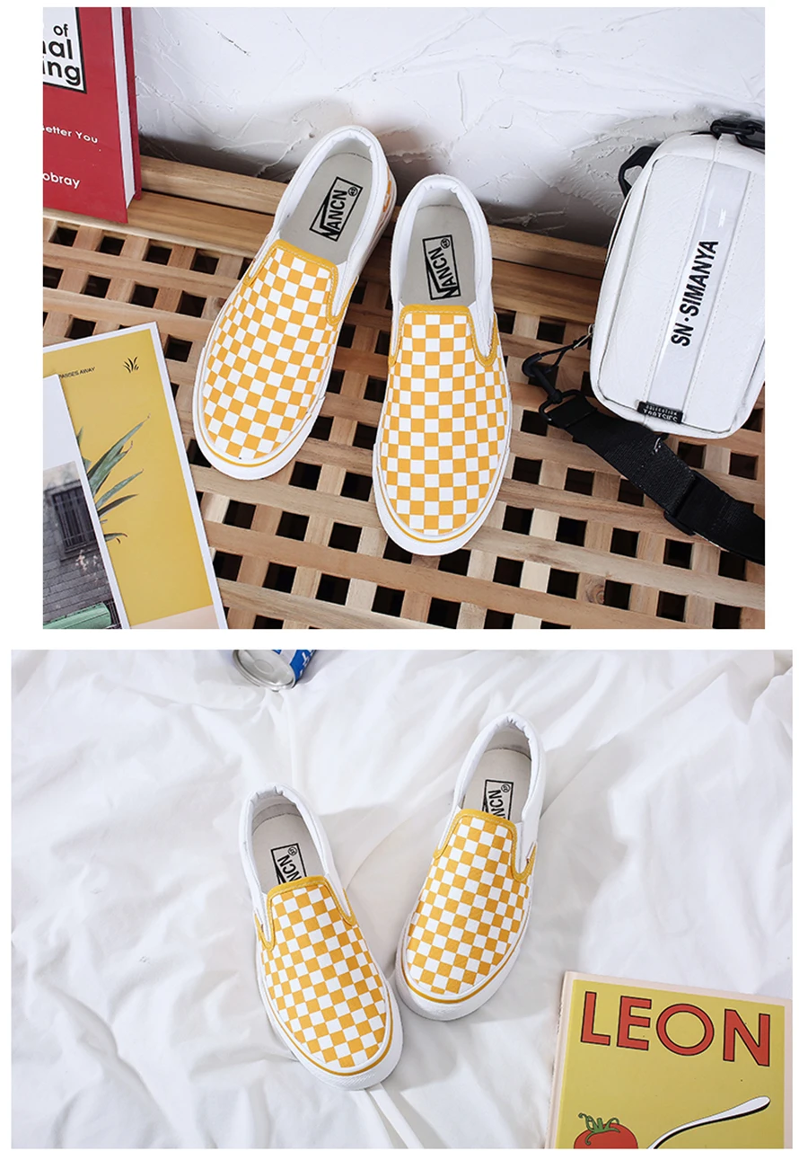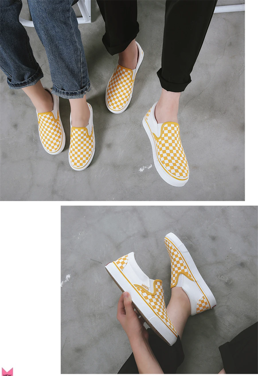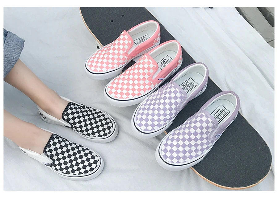 Кеды холщовые для мужчин и женщин, классические кроссовки без шнуровки, шахматная Уличная обувь для скейтборда, спортивные, розовые