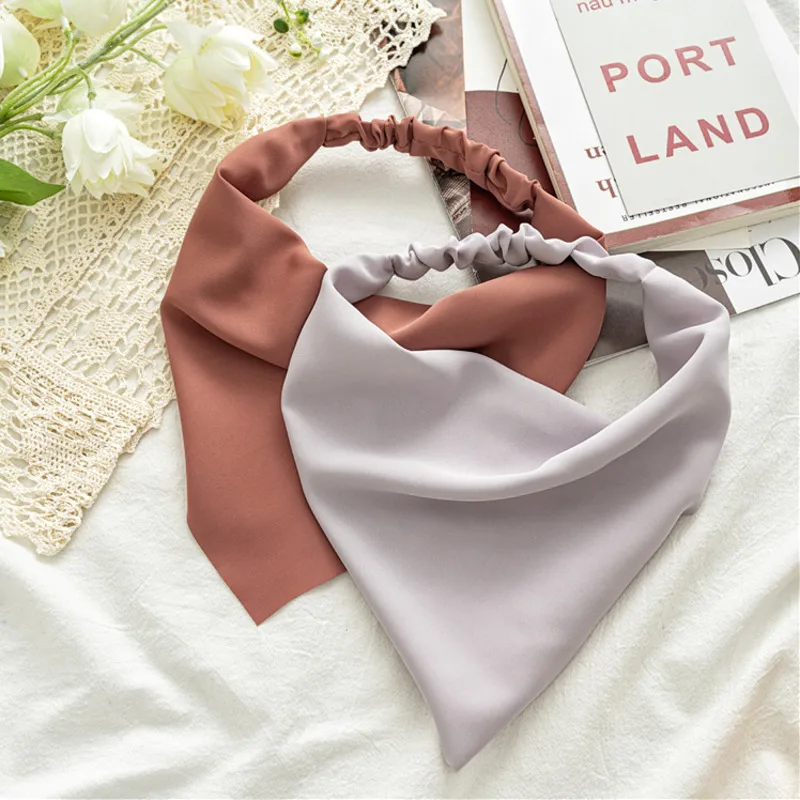 Новые однотонные атласные повязки на голову для женщин, простой эластичный ободок, модные аксессуары для волос, конфетные головные уборы для девушек
